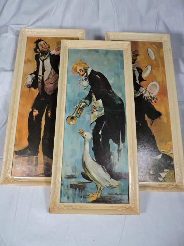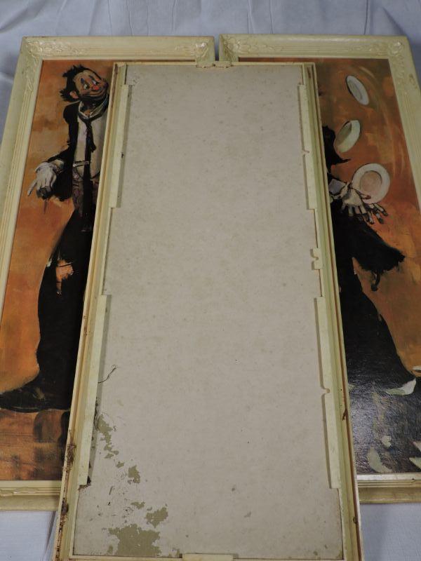 Two framed prints of clowns. Please read Terms and Conditions before placing a bid. Pick up is Saturday, November 30 from 9am to 3 pm in Bridgeton, NJ. All sales are final. All sales are as is, where is. Please review all photos. Any props included in photos are not included in listing. All measurements are approximate.