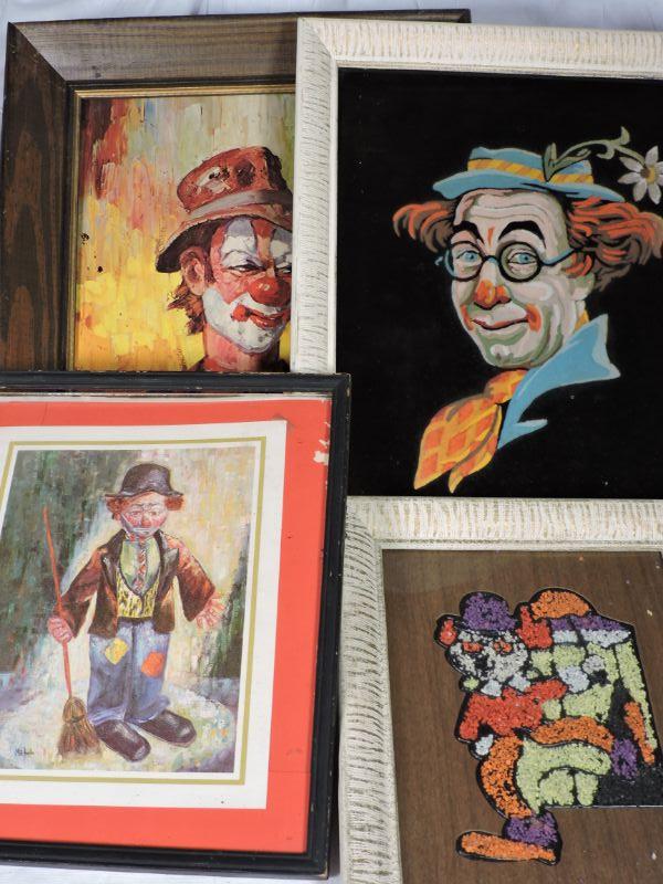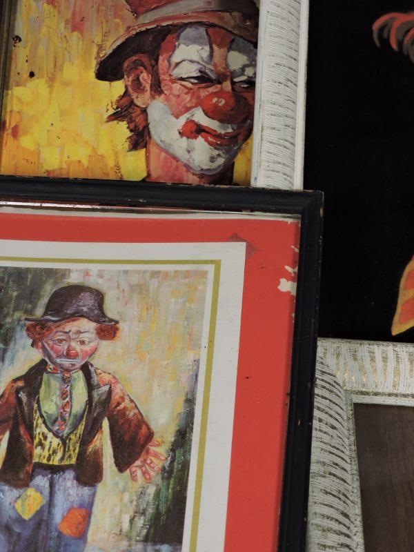 Four clown prints. Please read Terms and Conditions before placing a bid. Pick up is Saturday, November 30 from 9am to 3 pm in Bridgeton, NJ. All sales are final. All sales are as is, where is. Please review all photos. Any props included in photos are not included in listing. All measurements are approximate.