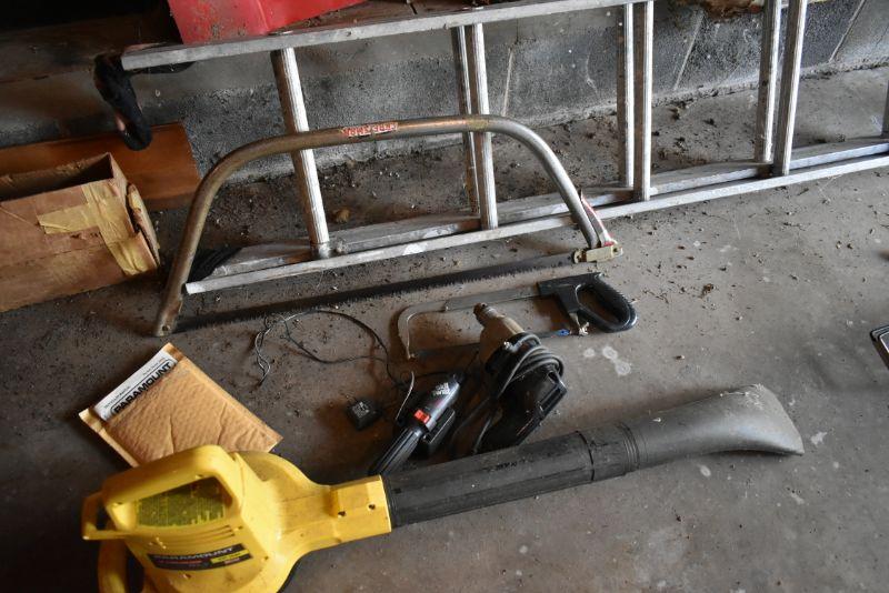 Extending ladder, blower, couple of saws, drill. Please read Terms and Conditions before placing a bid. Pick up is Saturday, November 30 from 9am to 3 pm in Bridgeton, NJ. All sales are final. All sales are as is, where is. Please review all photos. Any props included in photos are not included in listing. All measurements are approximate.