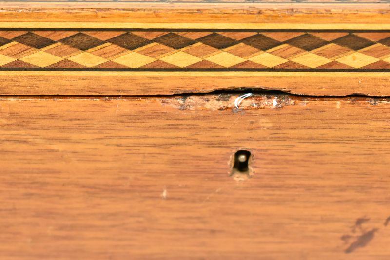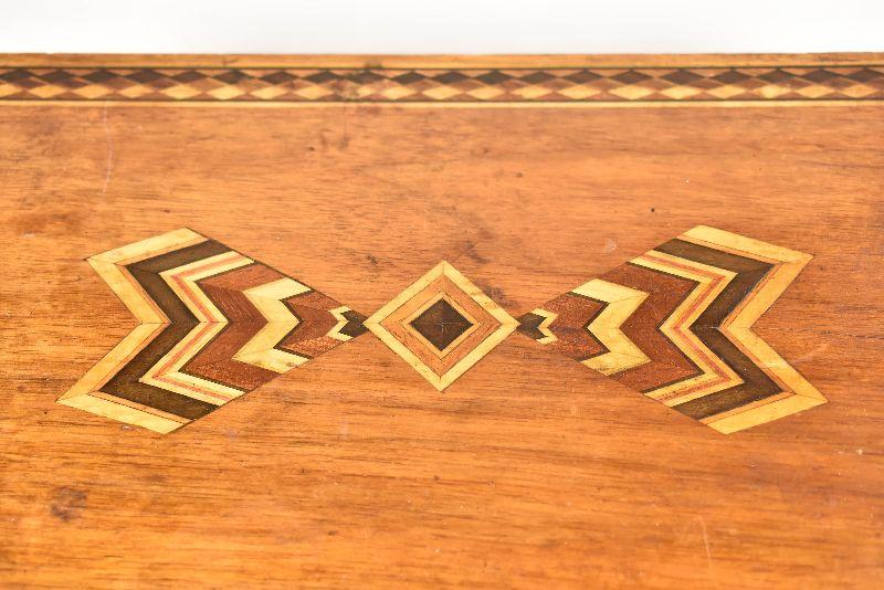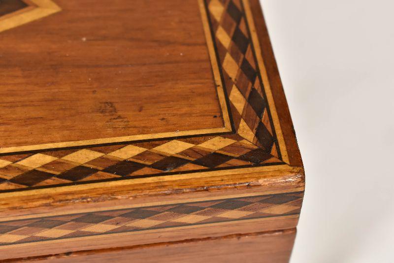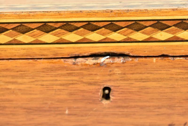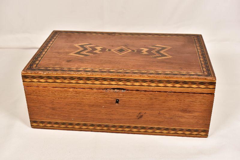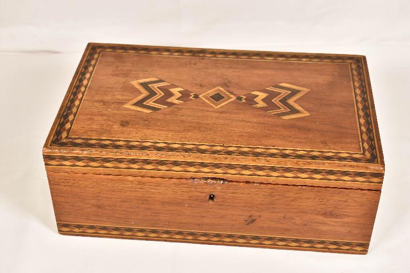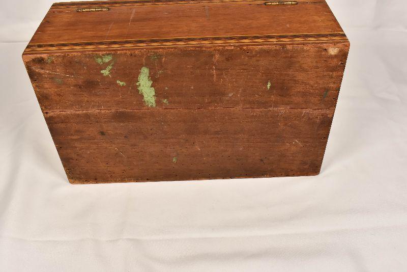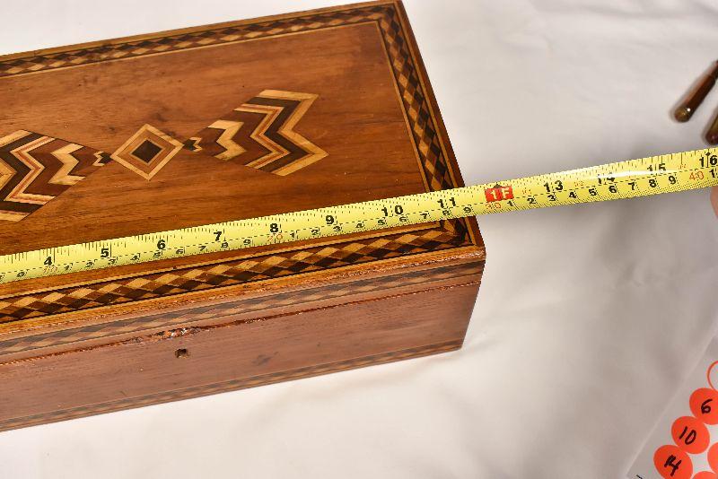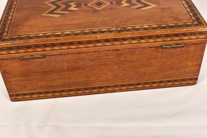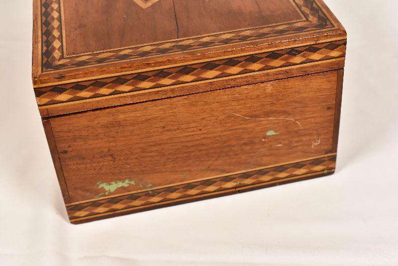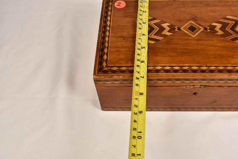 This vintage box has some beautiful inlaid designs. We will not force or pry this box open but leave it up to the winning bidder to do so.