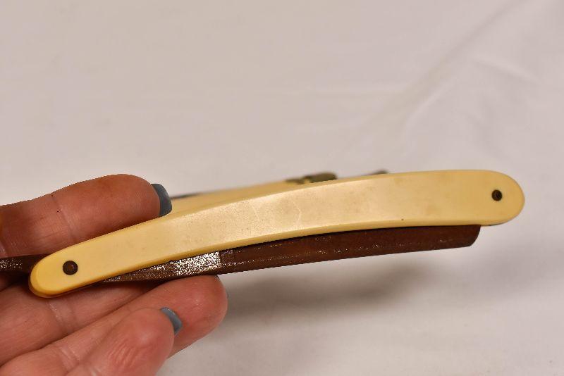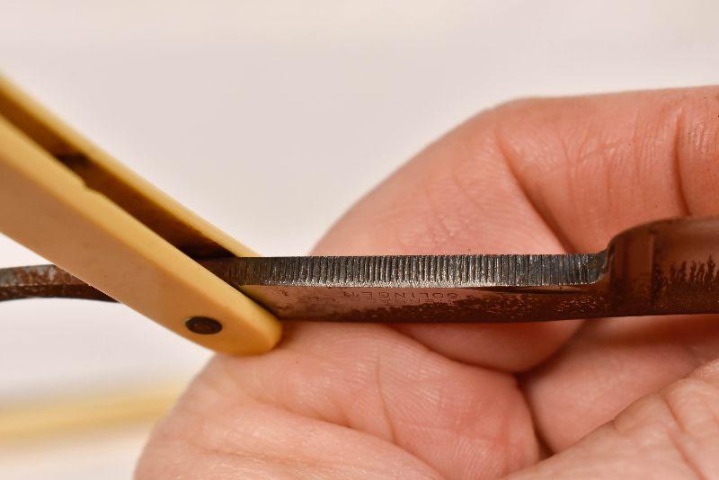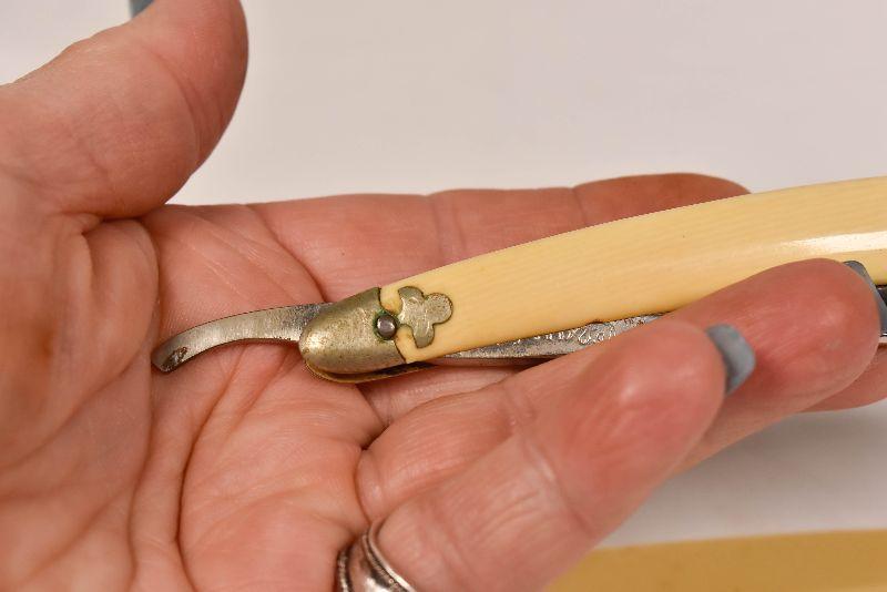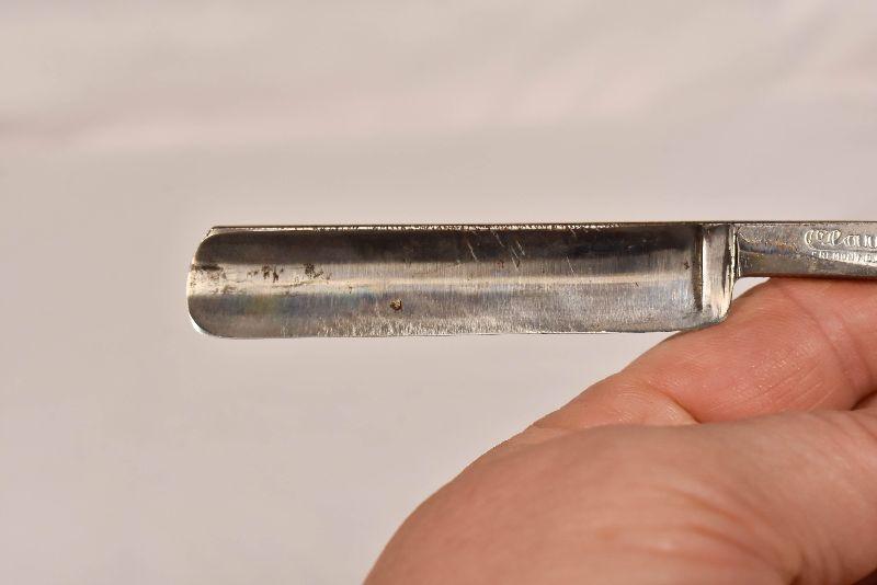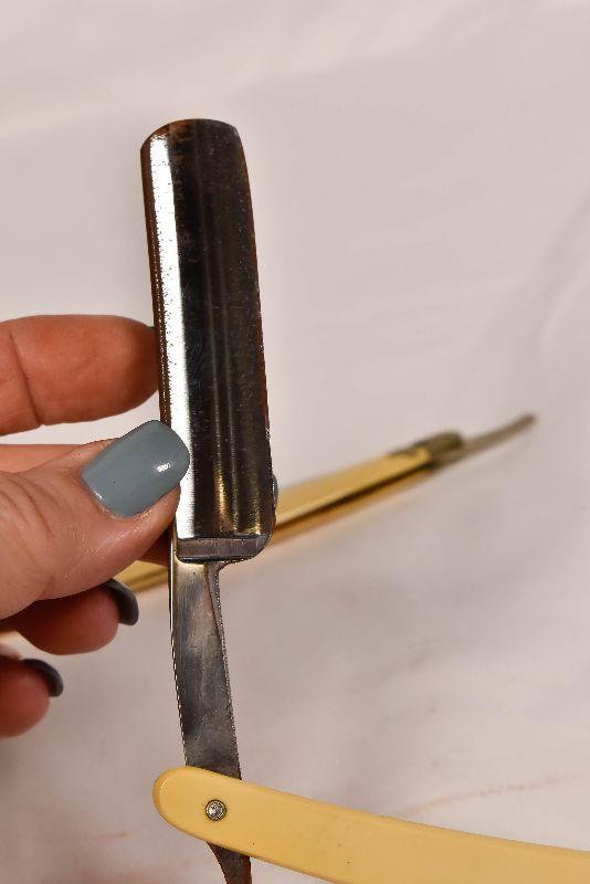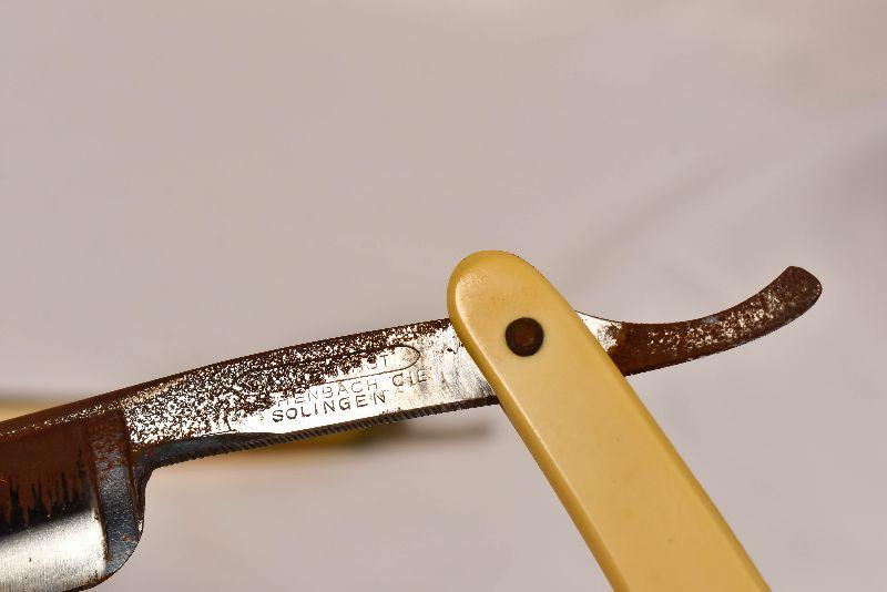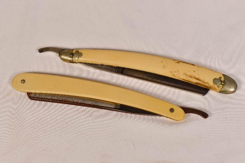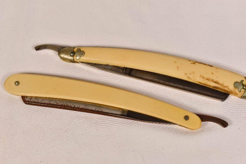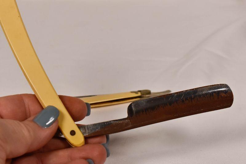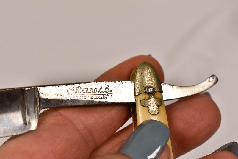 One is by Clauss Shear Co out of Ohio and the other is a German one, can't make out manufacturer name. Pair of vintage straight razors.
