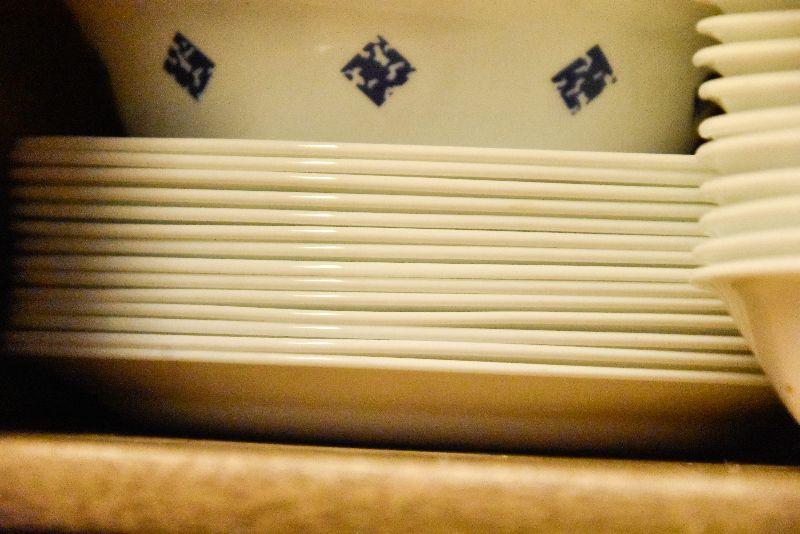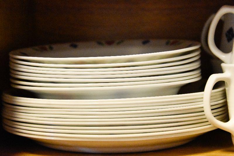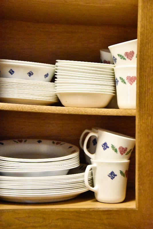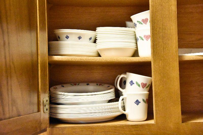 Corelle by Corningware dishes. Service for 10 with some extra pieces. Bring box for moving.