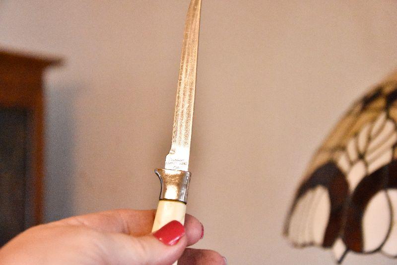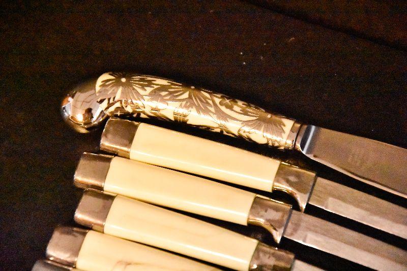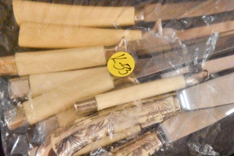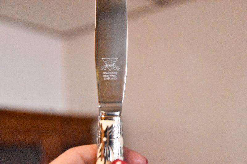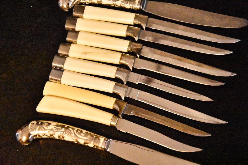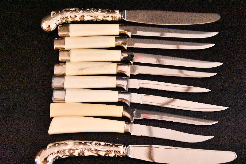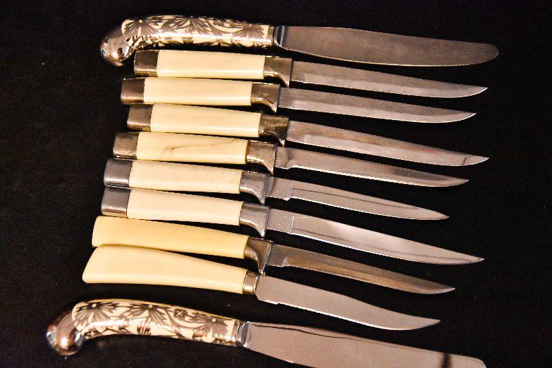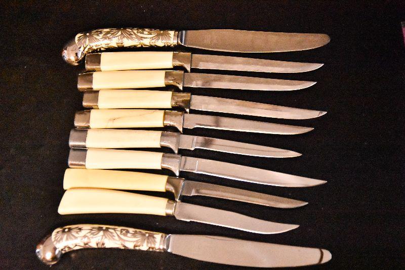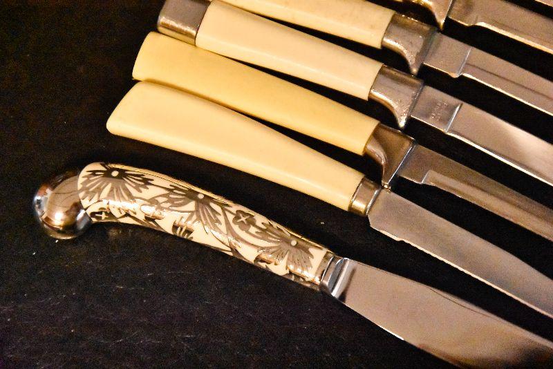 Two Sheffield of England knives and a set of stainless knives with bakelite handles.