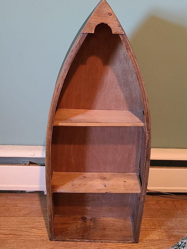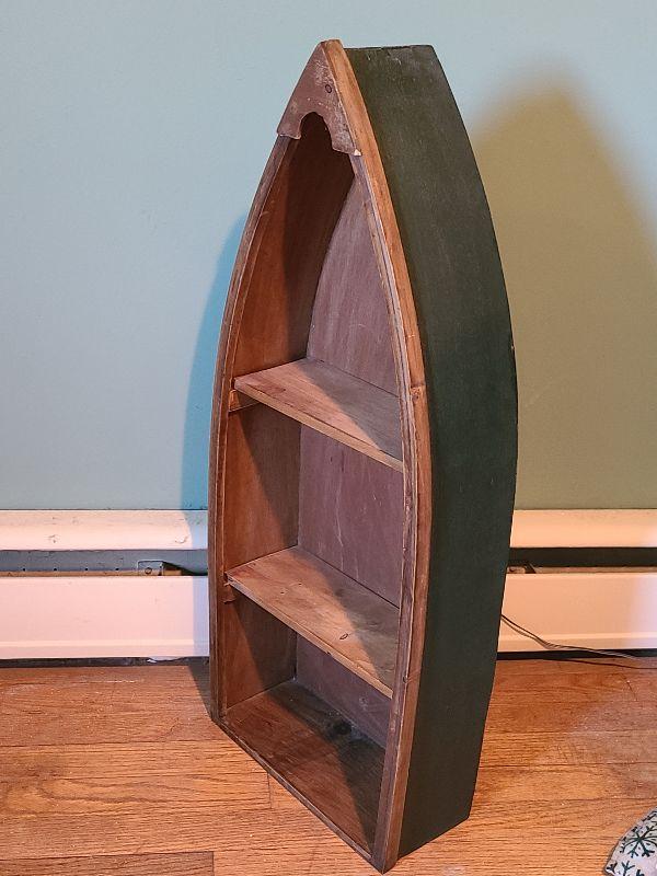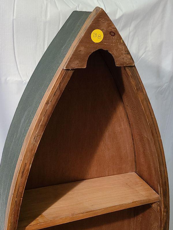 Shelf that looks like a boat. This can hang on wall also. Greenish blue in color. Please see pictures for contents of the lot, size and condition. Thank you for looking and have fun bidding!