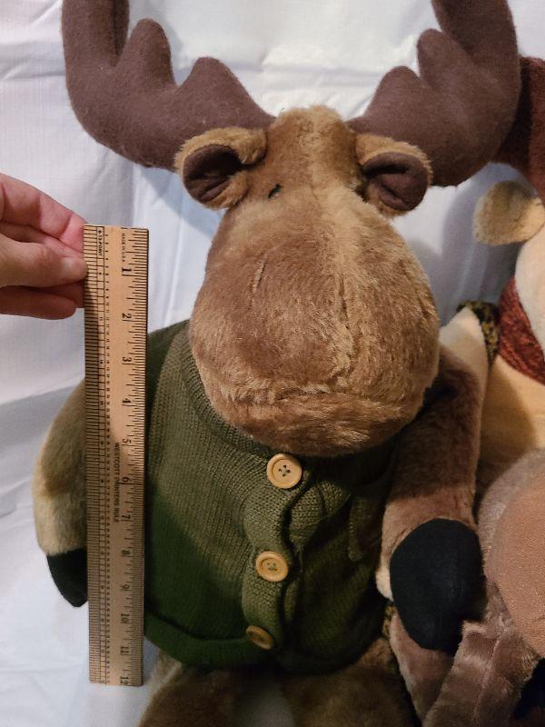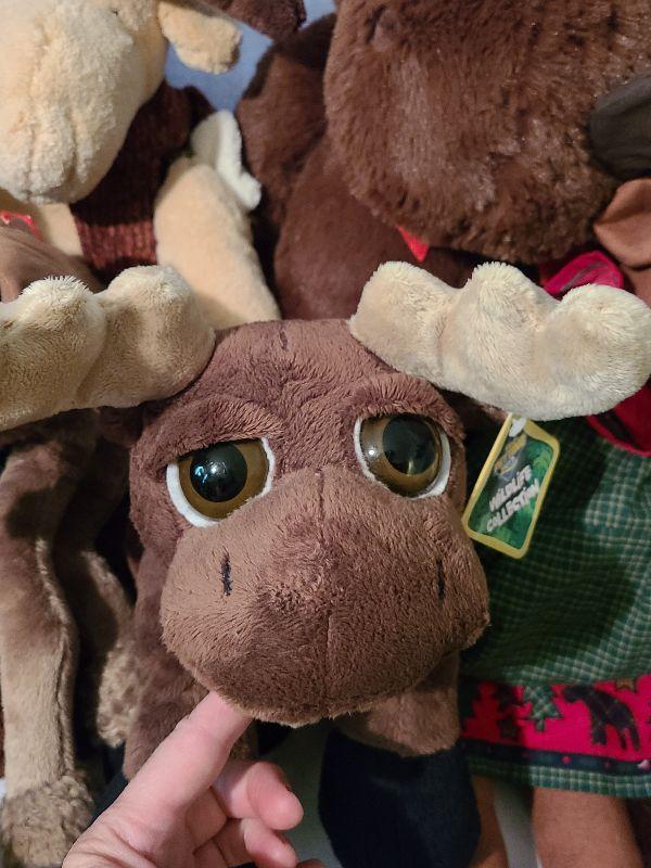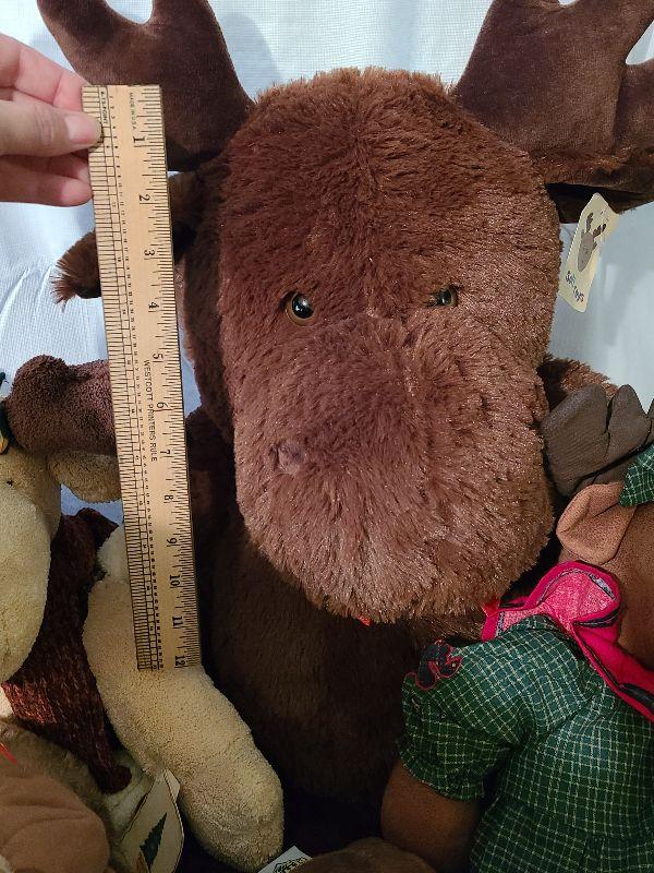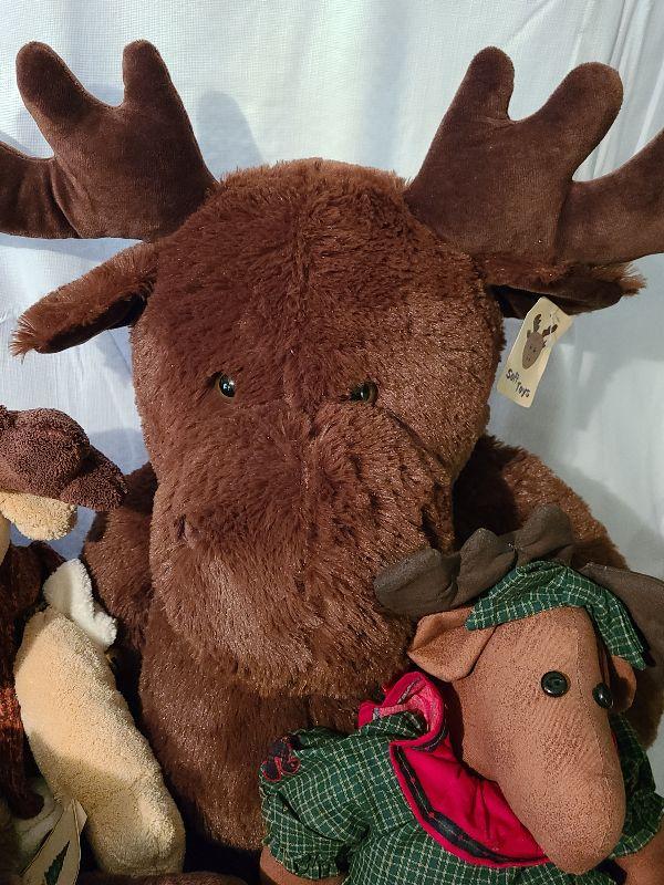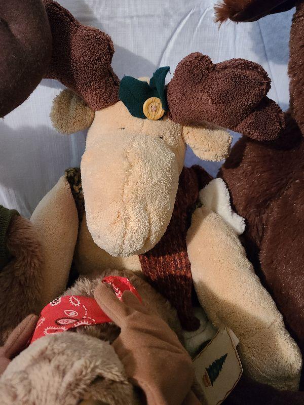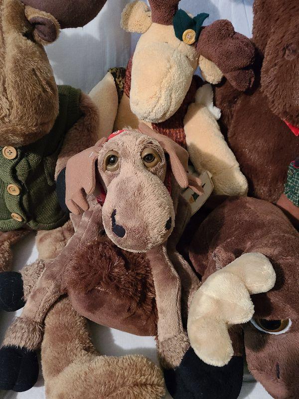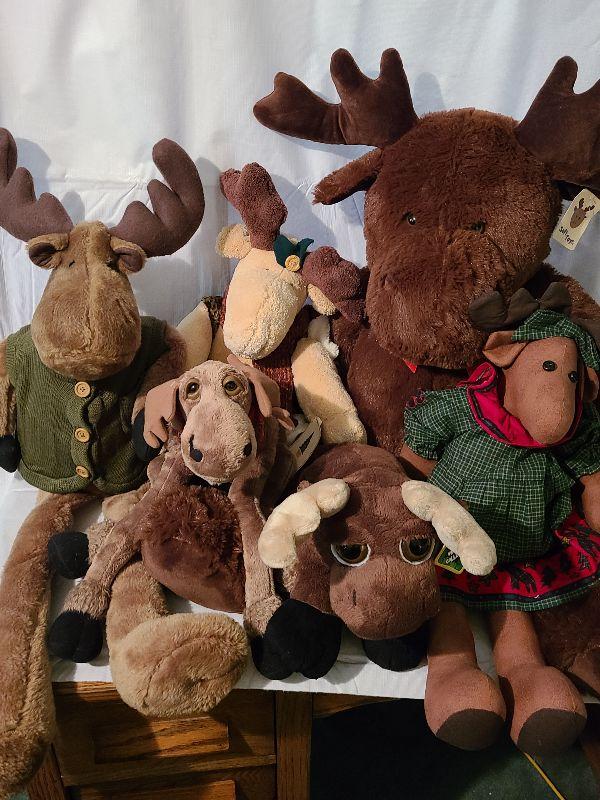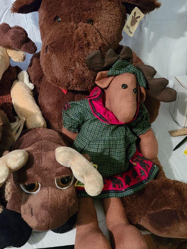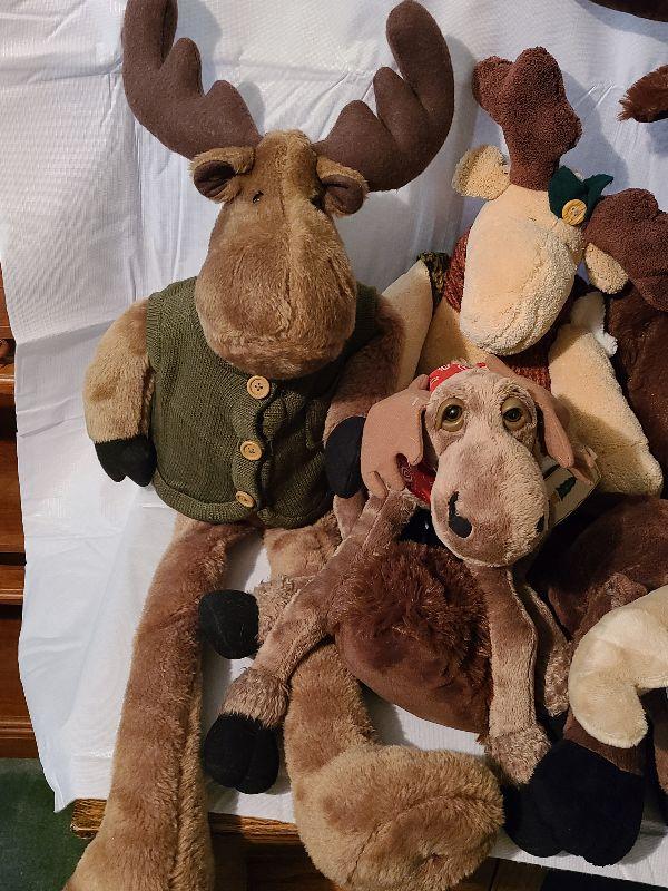 Fun lot of Stuffed Moose, one even has long legs and can be used as a door draft protector. Please see all pictures for contents of the lot, size and condition. Thank you for looking and have fun bidding