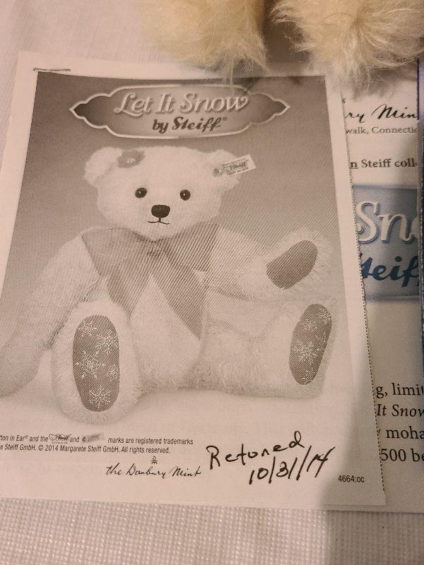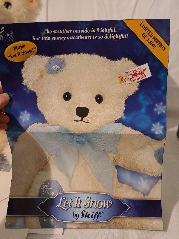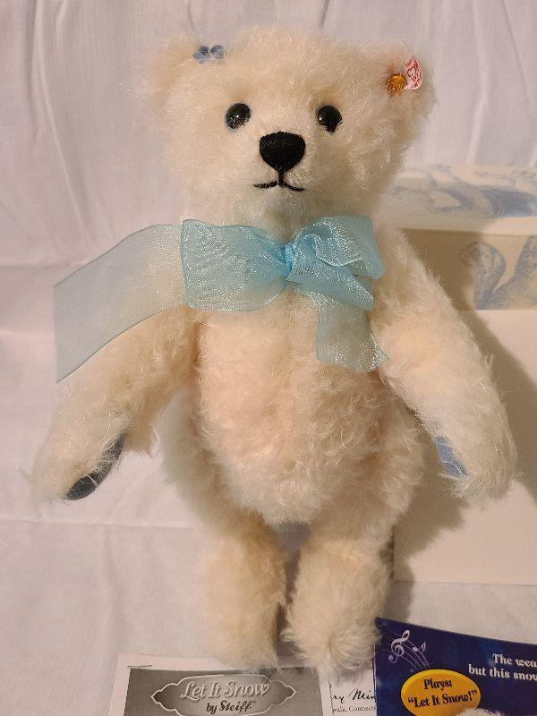 Very Collectible Bear retails over $200. Musical plays Let is Snow. Fully Jointed. Please see all pictures for contents of the lot, size and condition. Thank you for looking and have fun bidding