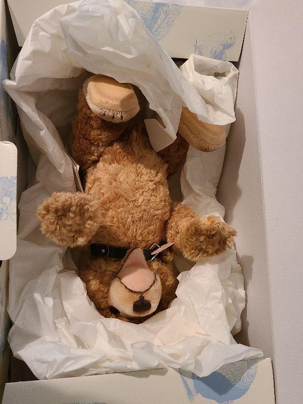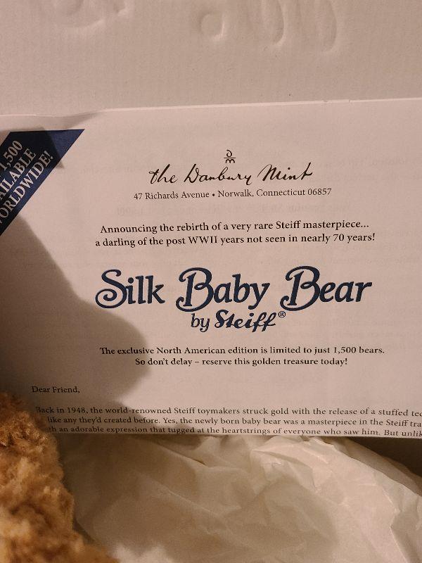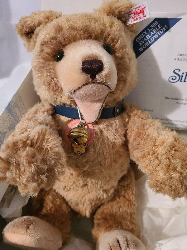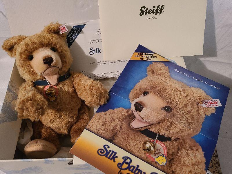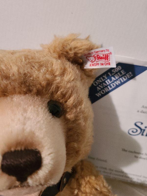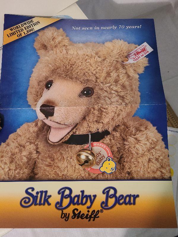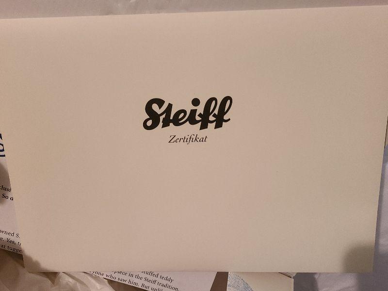 Very Collectible Bear by Steiff! This one is so soft, and comes with everything you see in pictures. Great Gift! Please see all pictures for contents of the lot, size and condition. Thank you for looking and have fun bidding