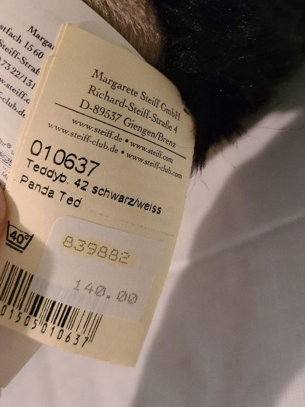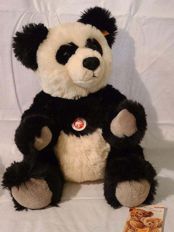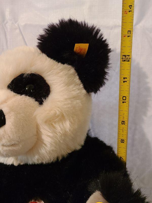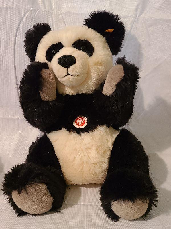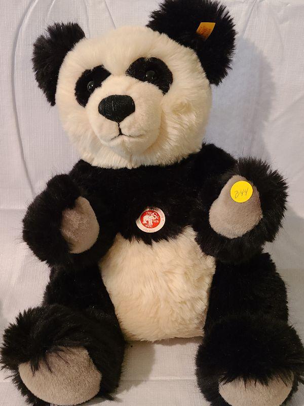 Another Collectible from Steiff. Soft Panda Bear that is 13 inches tall! New with Tags and just needs a new home to be loved! Please see all pictures for contents of the lot, size and condition. Thank you for looking and have fun bidding