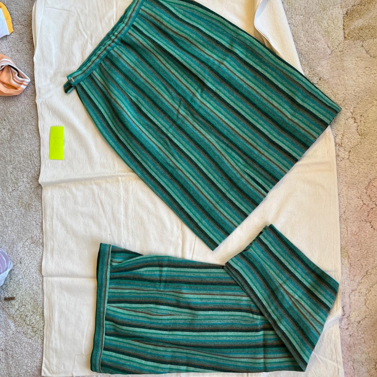 The striped slacks and skirt is AWESOME!