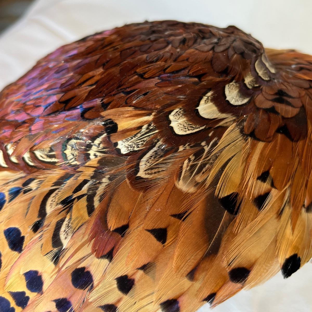 Great vintage hat, feathers are in tact!! Wire rack not included.