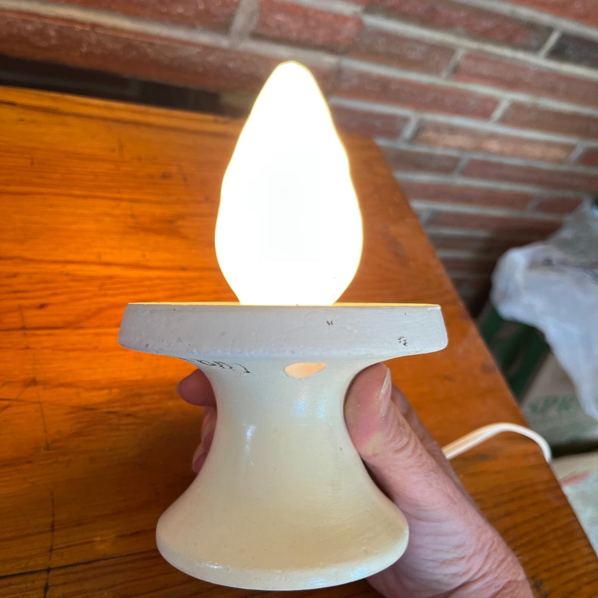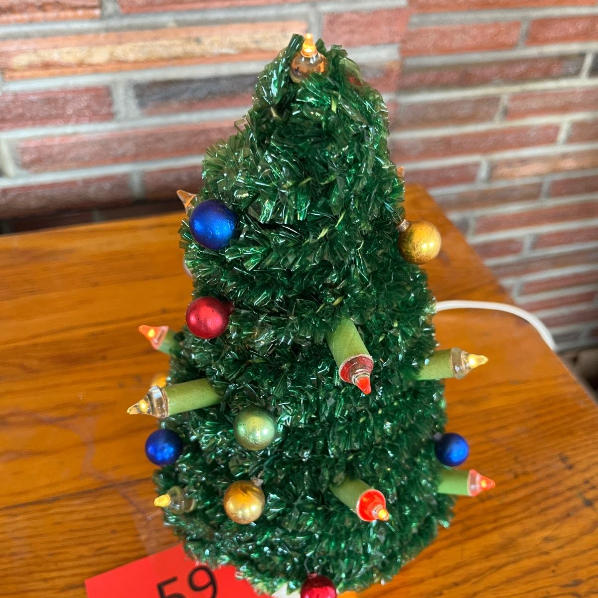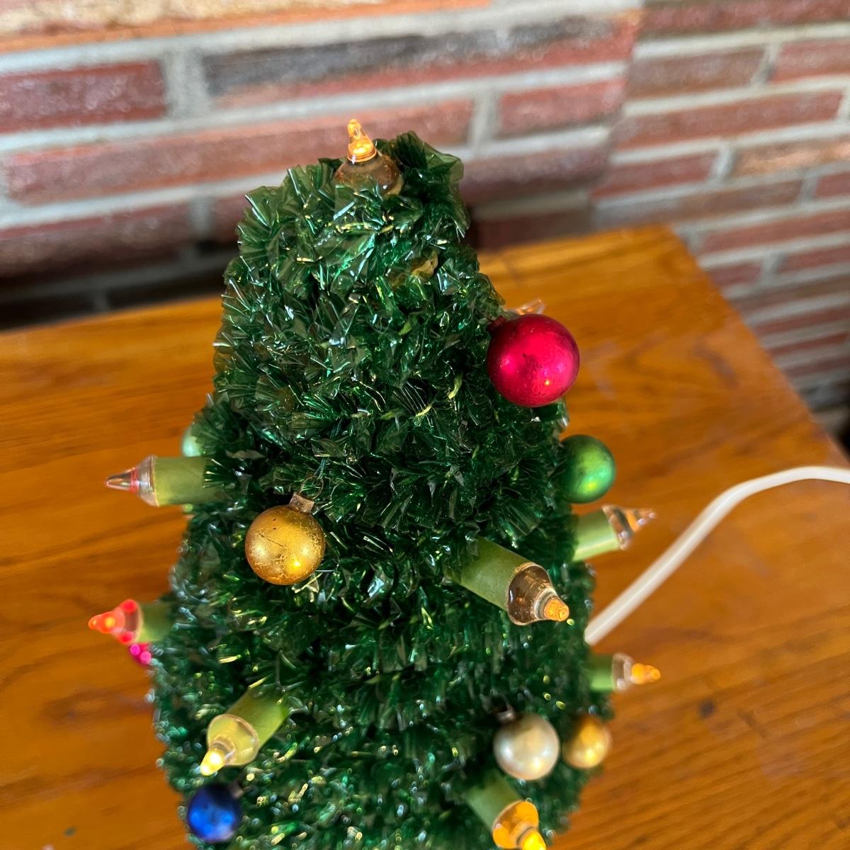 The tree is made of a paper mache spool! Too cute, does need a little garland repair.