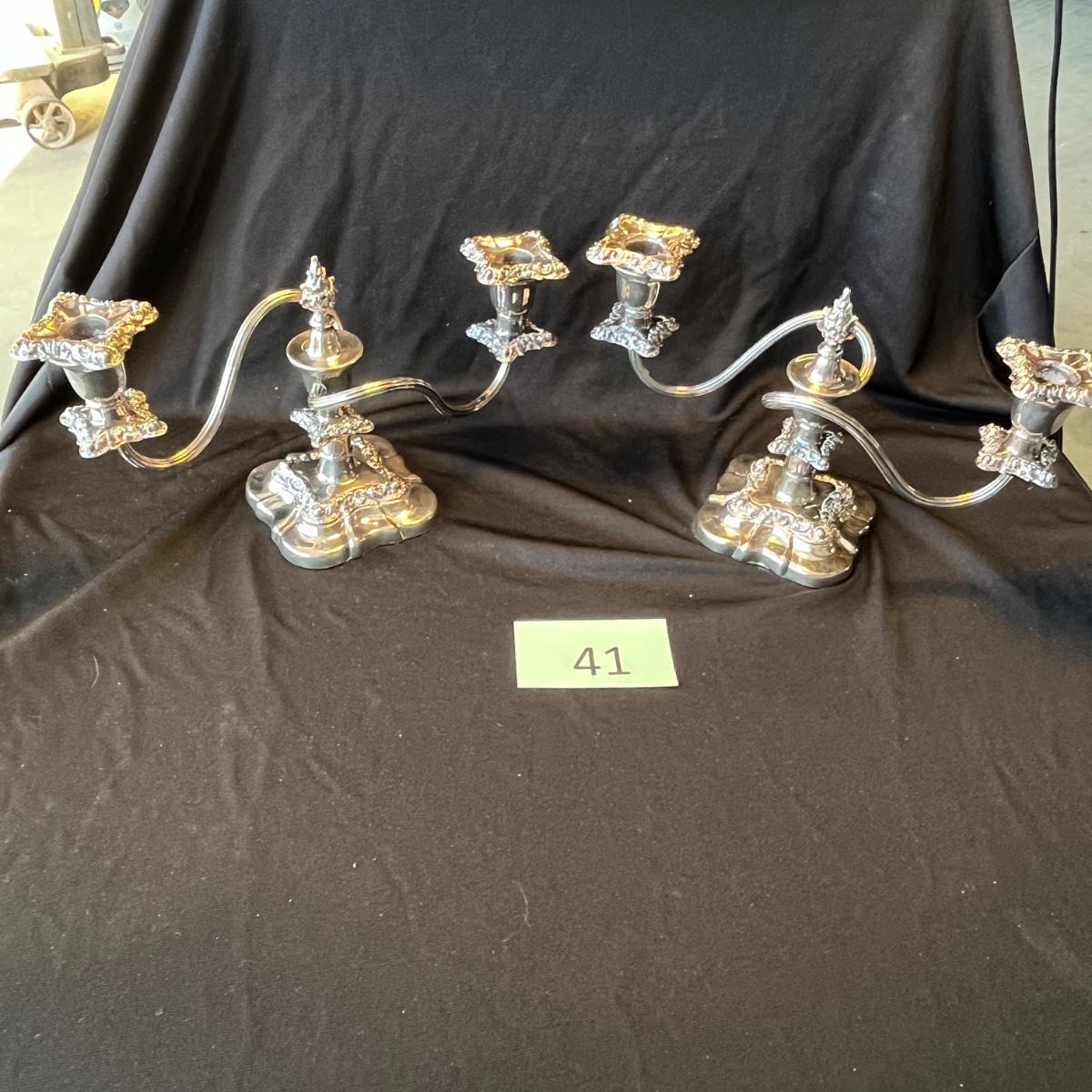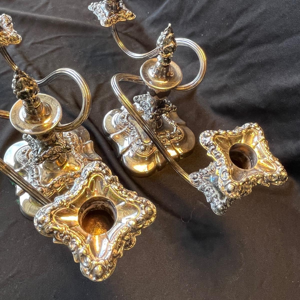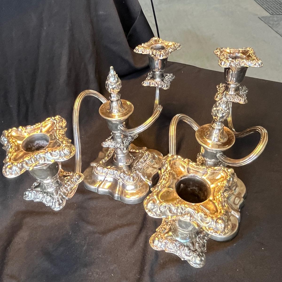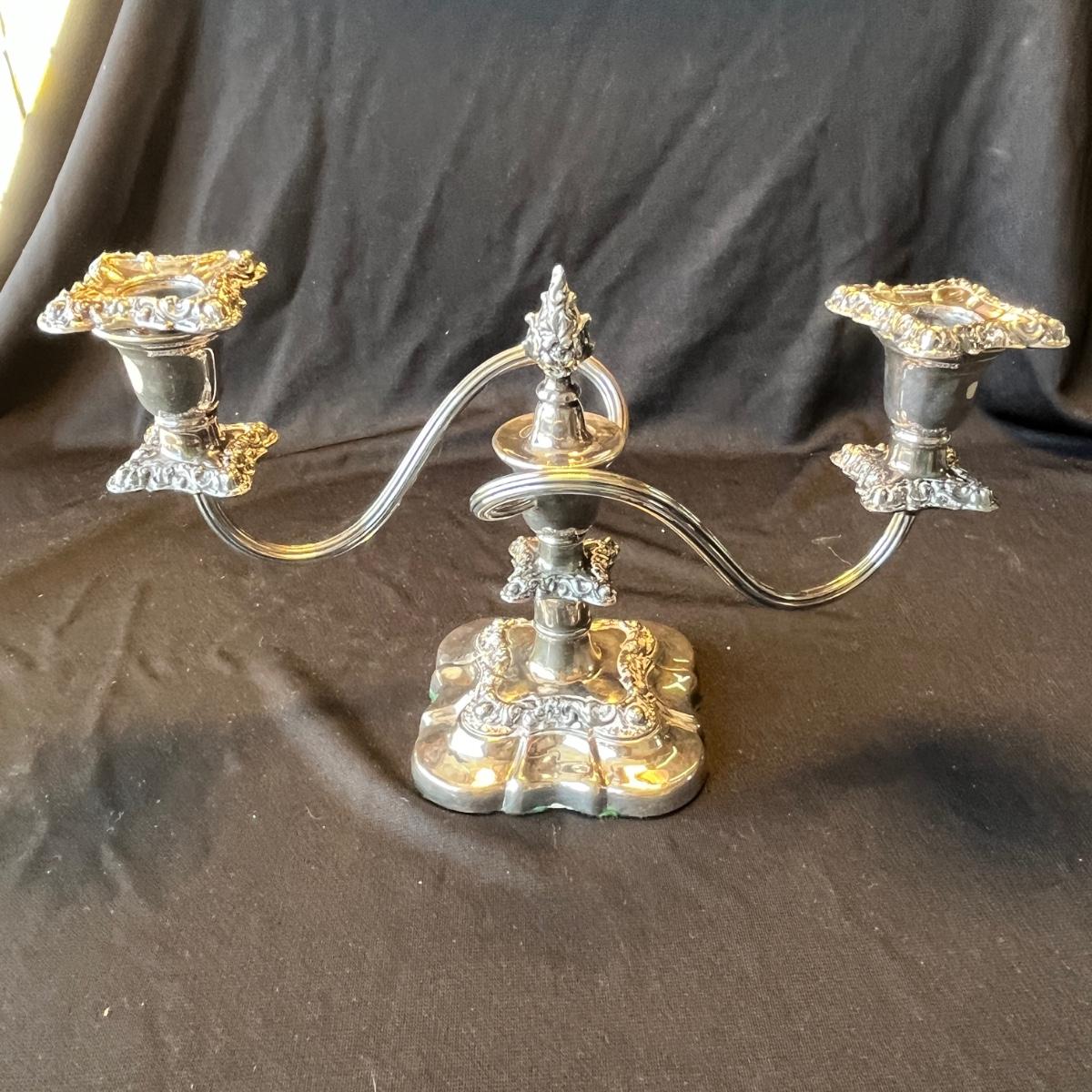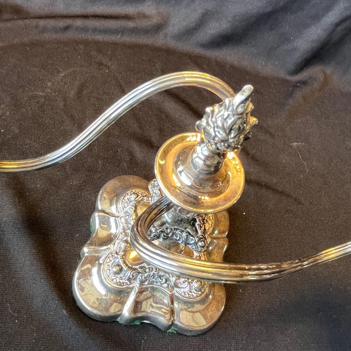 Rogers Baroque Silver Plated Double Candles