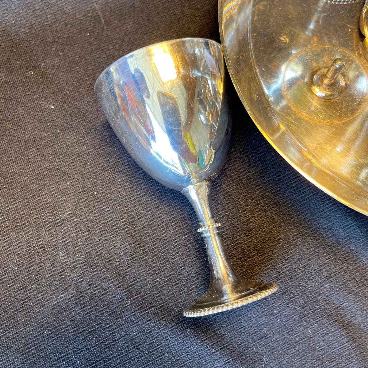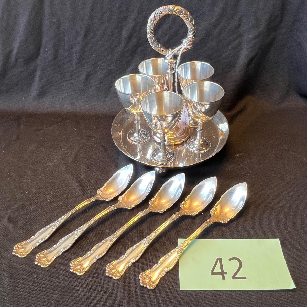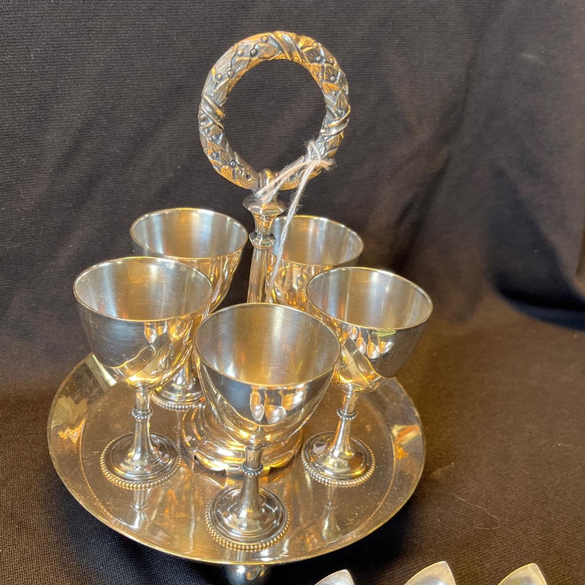 English silver plate Egg cups w/ spoons. Spoons are Roger's Bros.