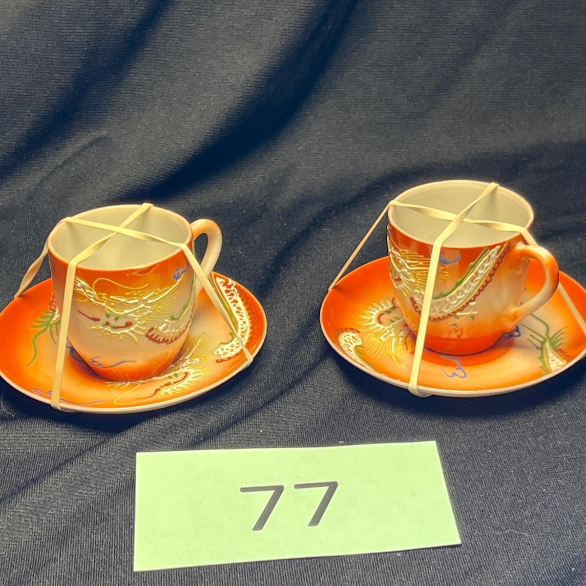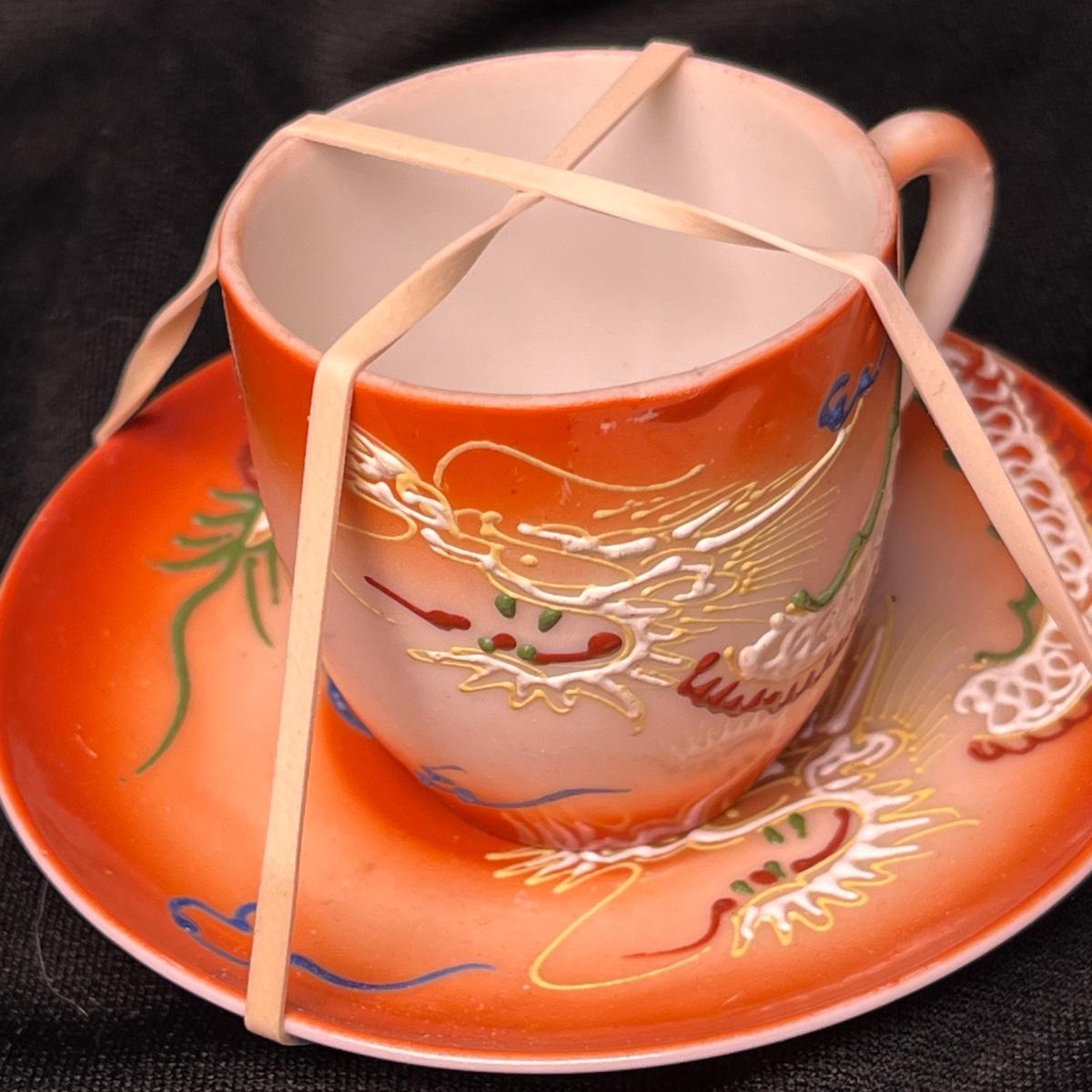Dragon ware moriage Demitasse Cups & Saucers