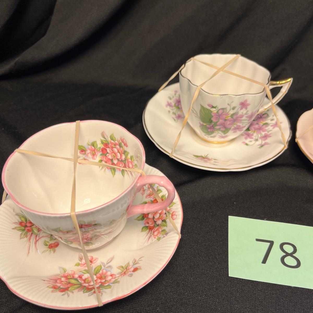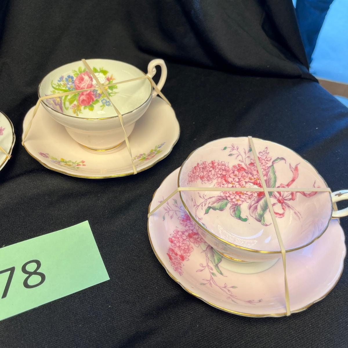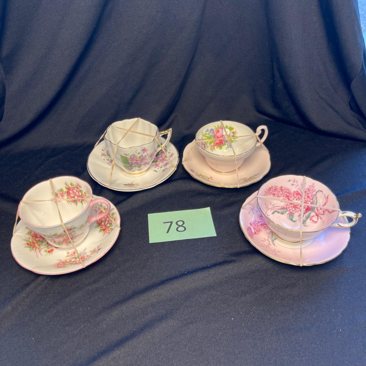 4 Floral English Bone China Cups & Saucers