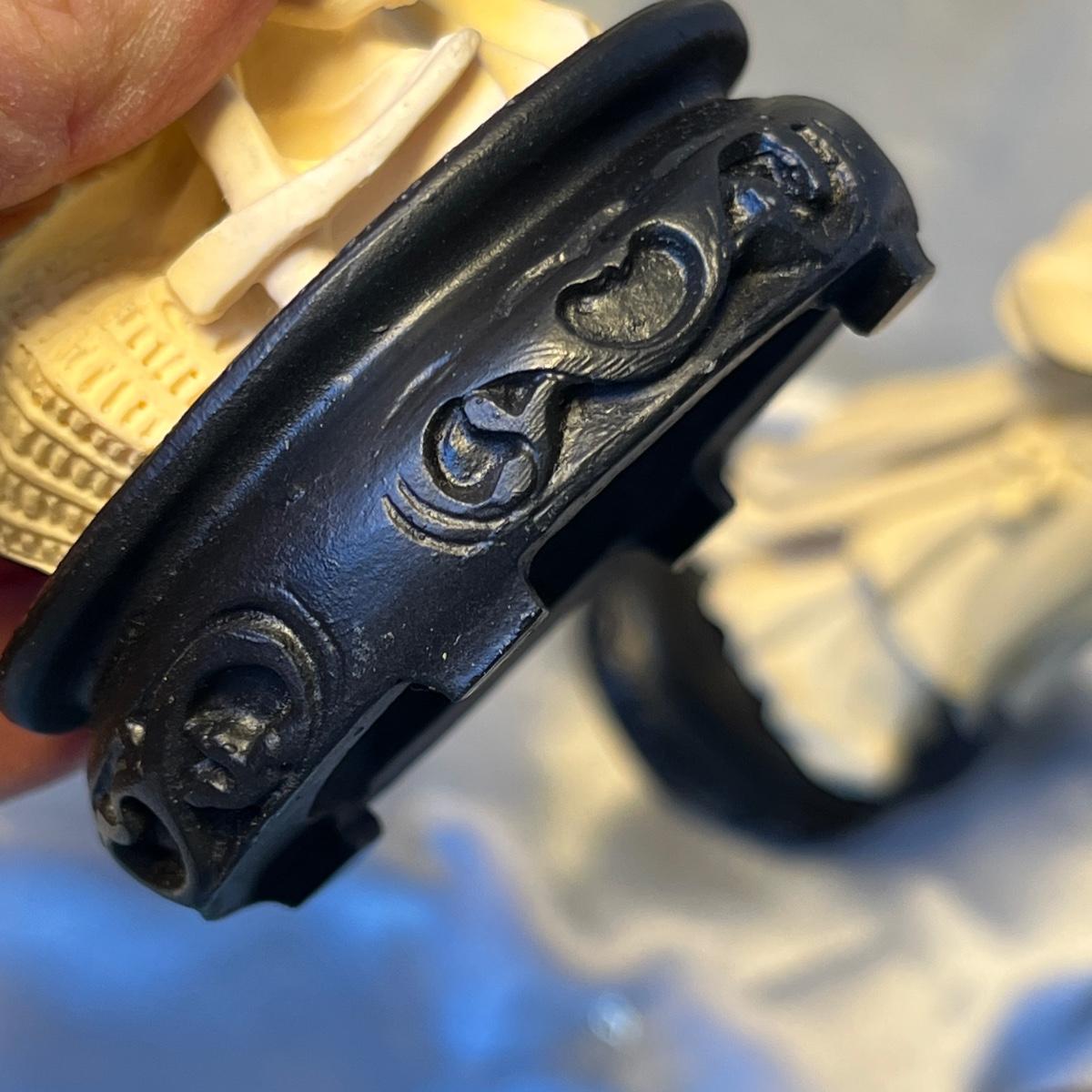 Made to look like ivory, but not. Good shape, nice pieces!