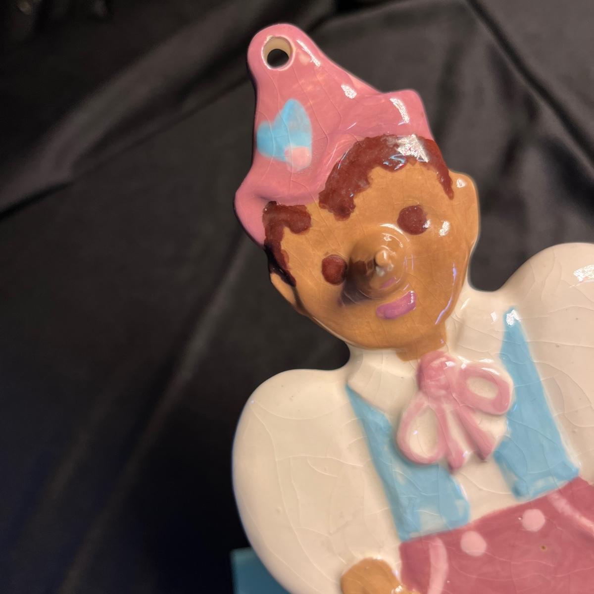 His nose is hooked, Pinocchio Key holder. These are rare not to have the nose broke or chipped!