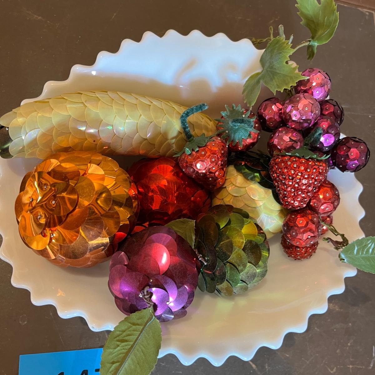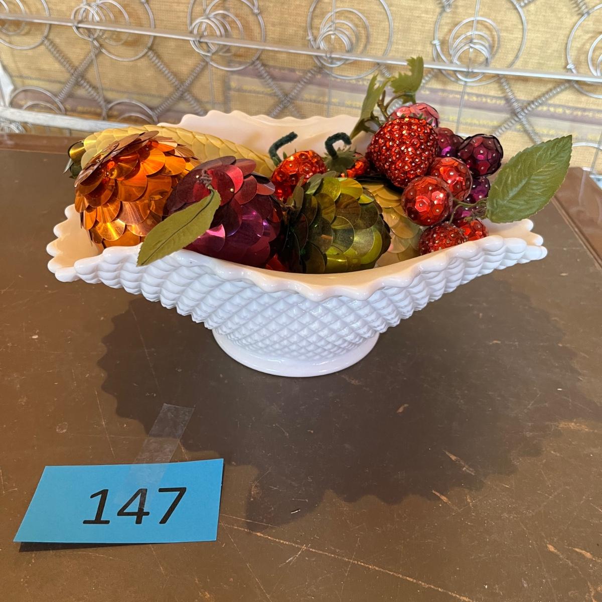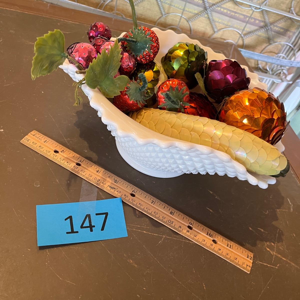 Westmoreland English Hobnail Milk Glass w/ fruits