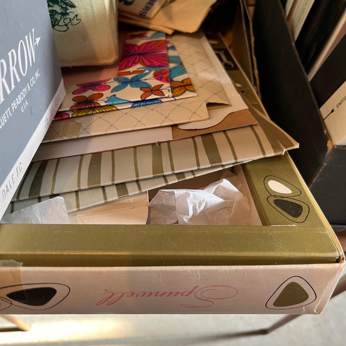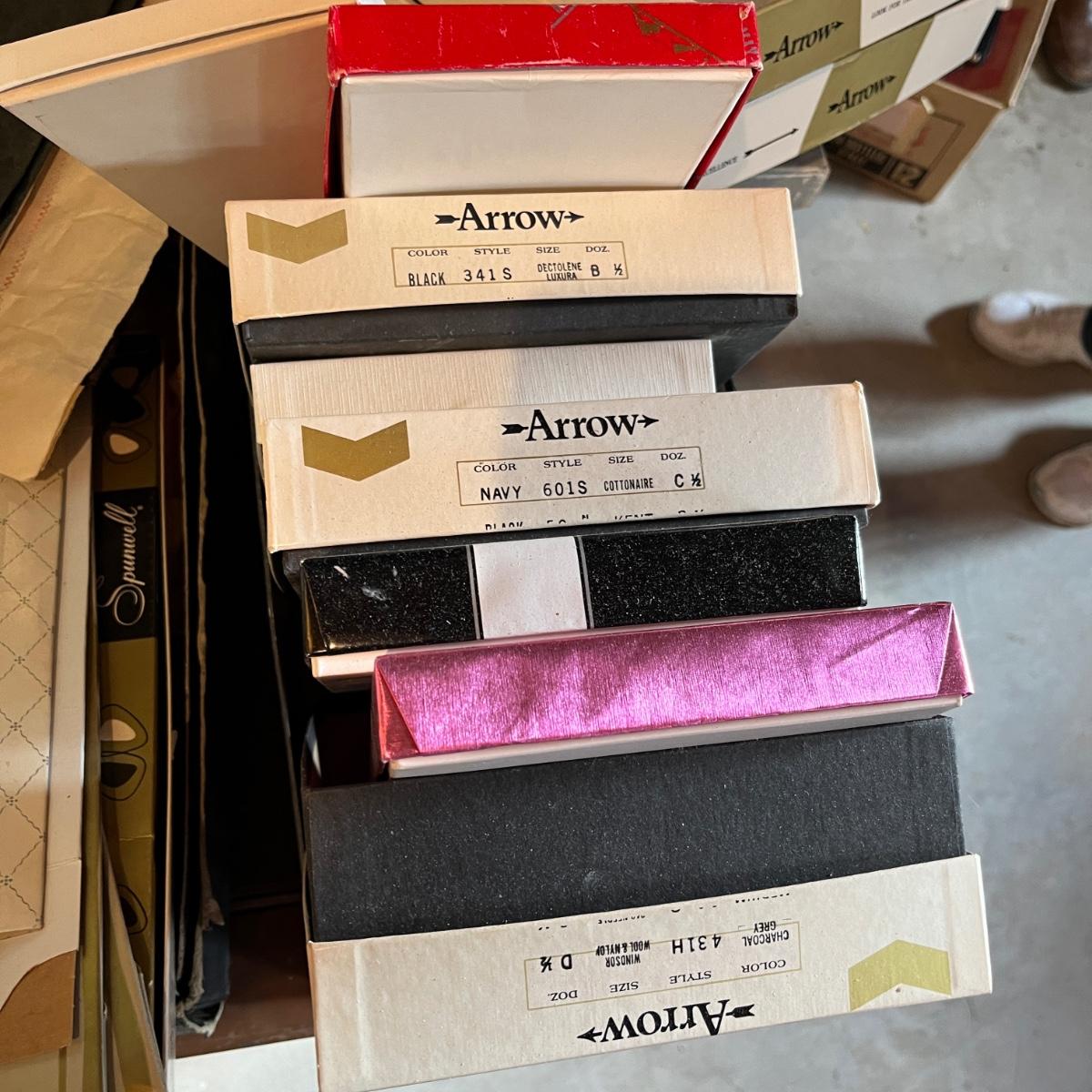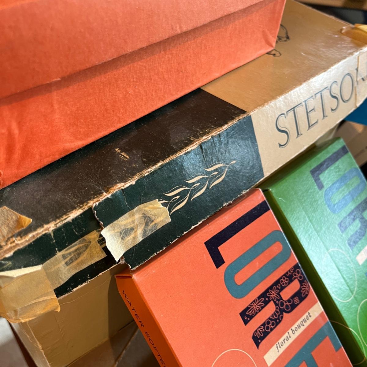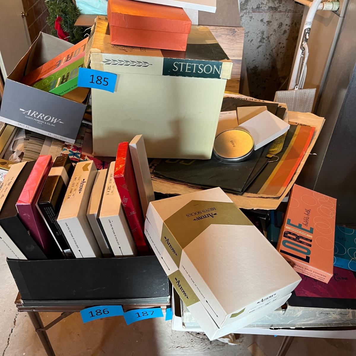 Vintage clothing, hats, blanket boxes. All empty. Great for display.