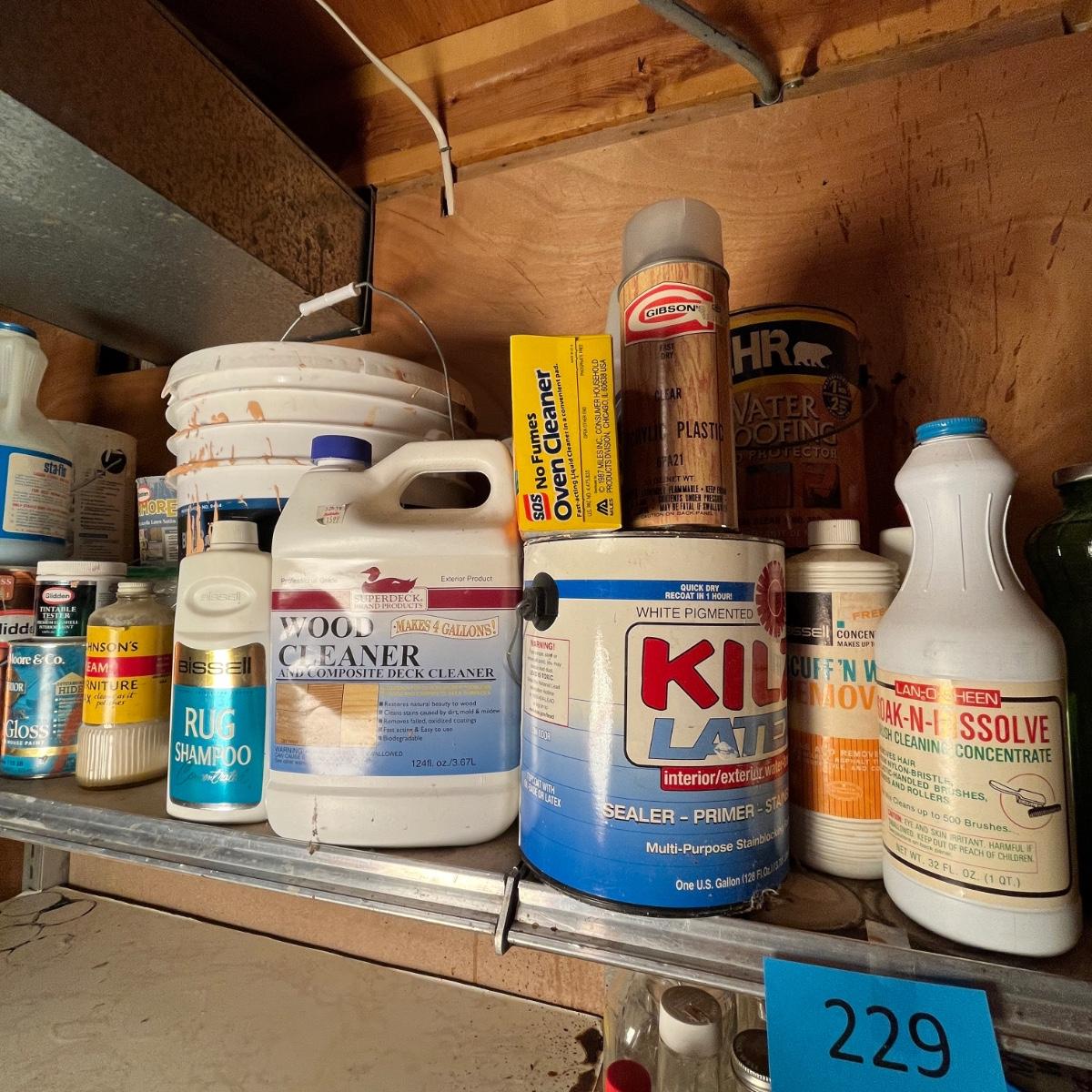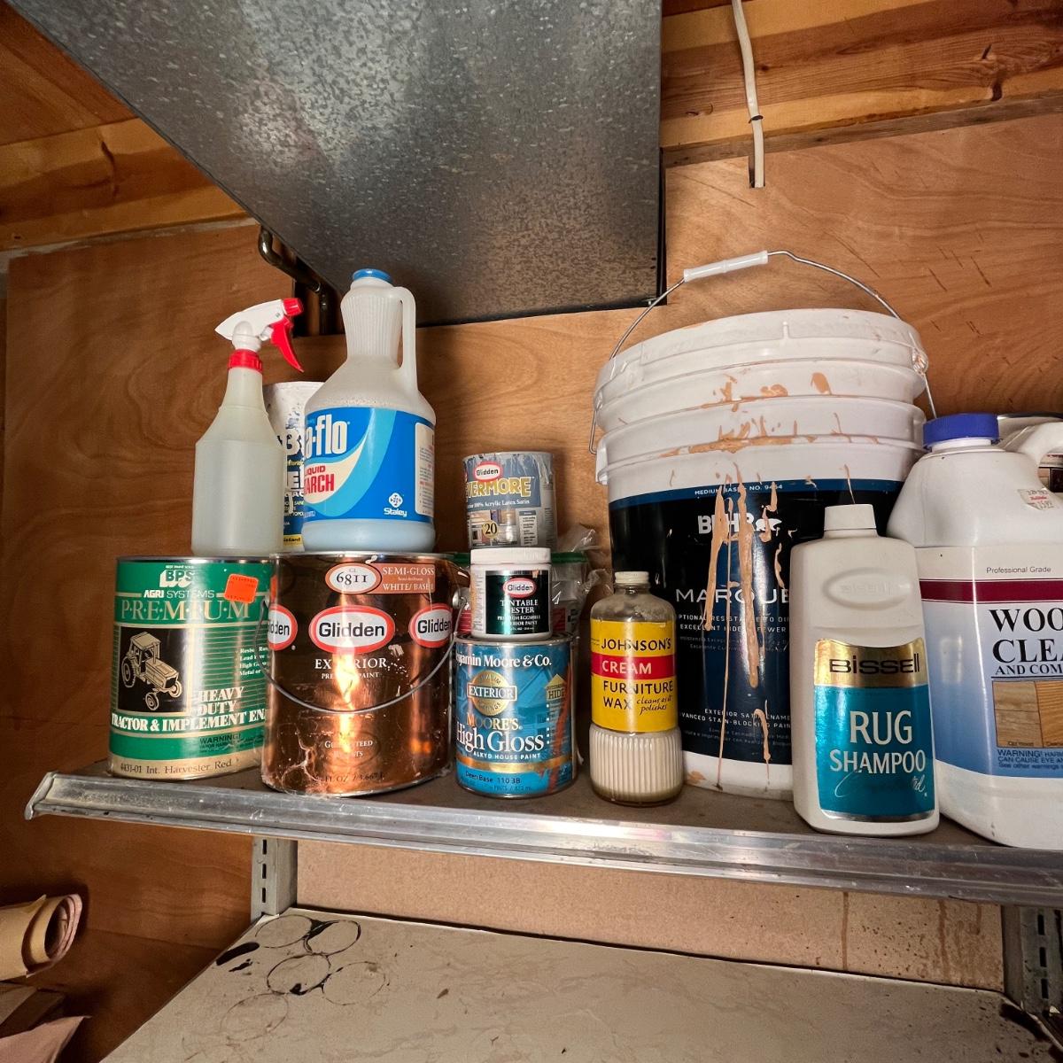 Paint, Sealers, & Cleaning supplies! Mostly full, will not guarantee condition.