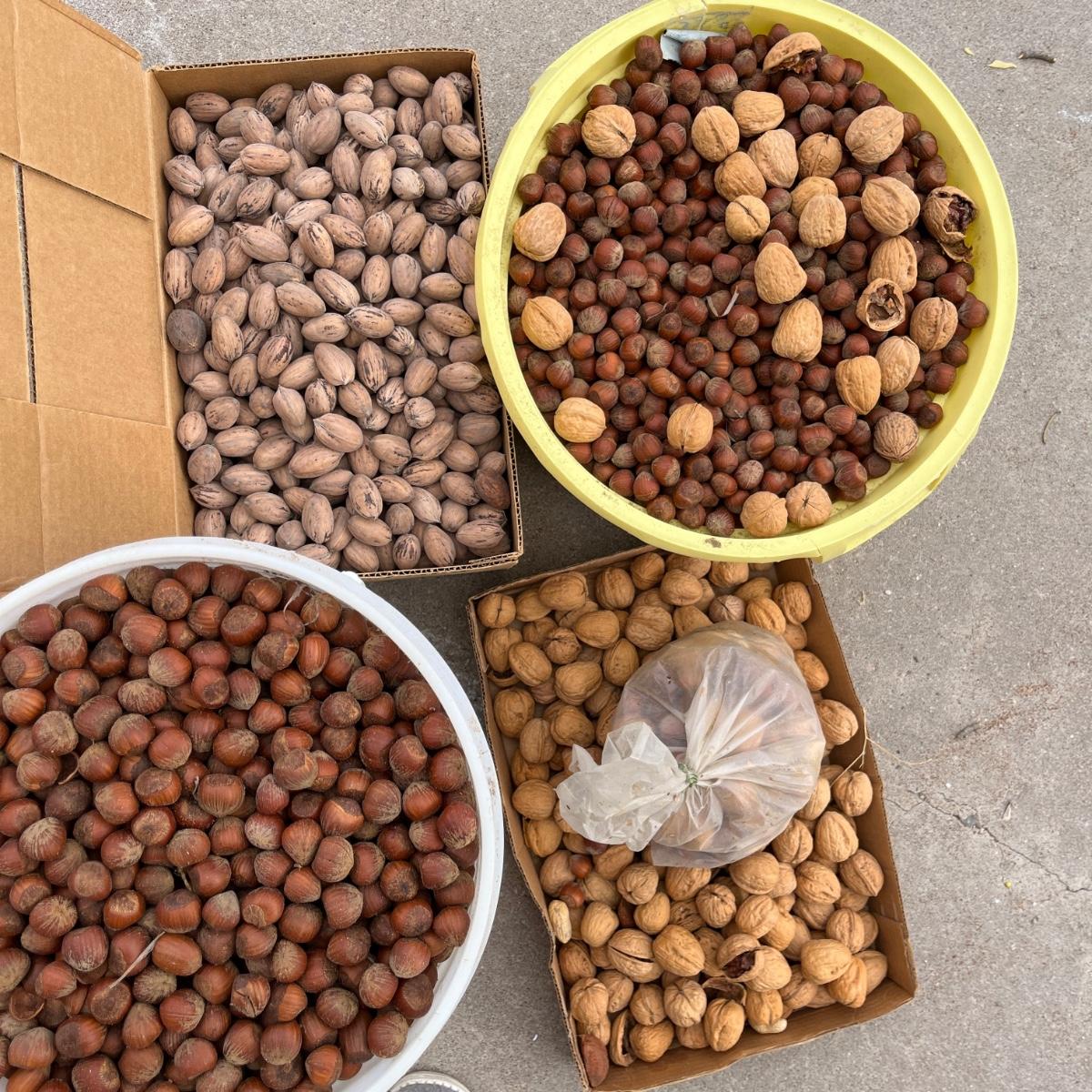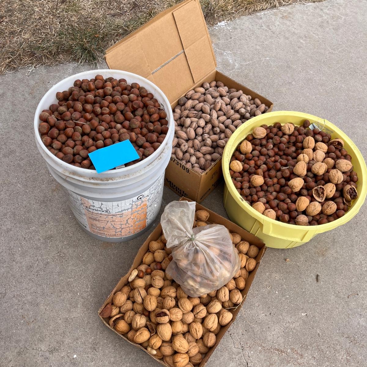 Peanuts, hazelnuts, walnuts! I wouldn't suggest eating them. Be good for crafts!