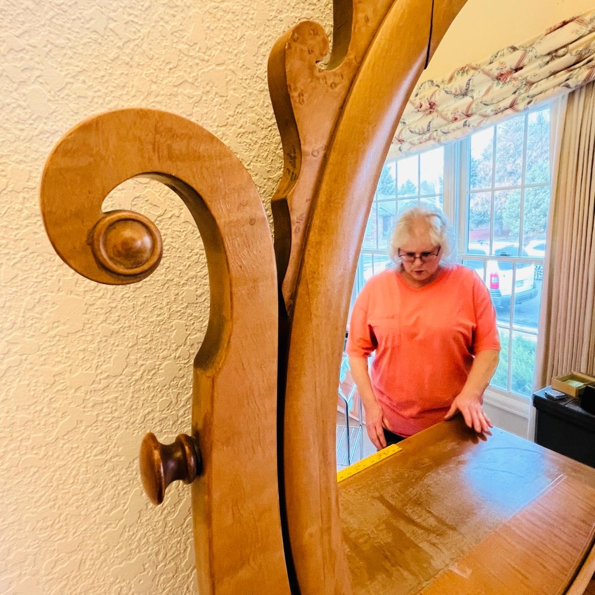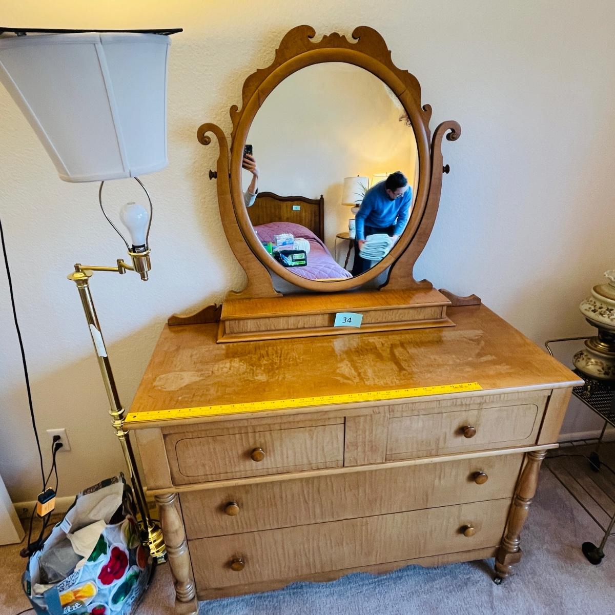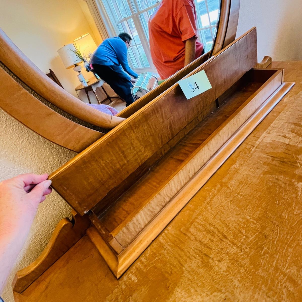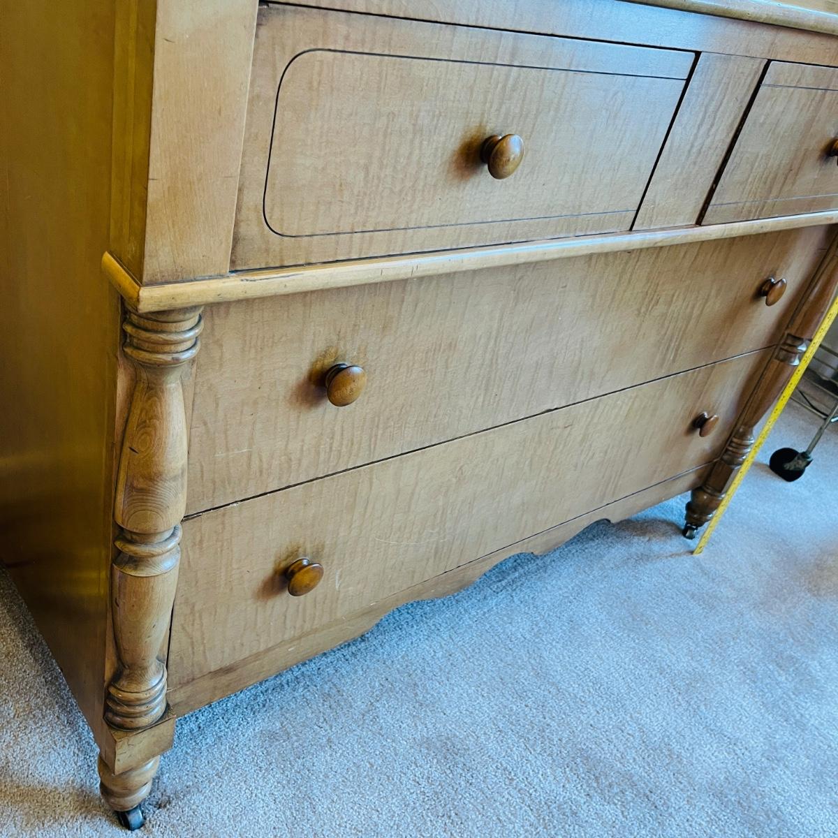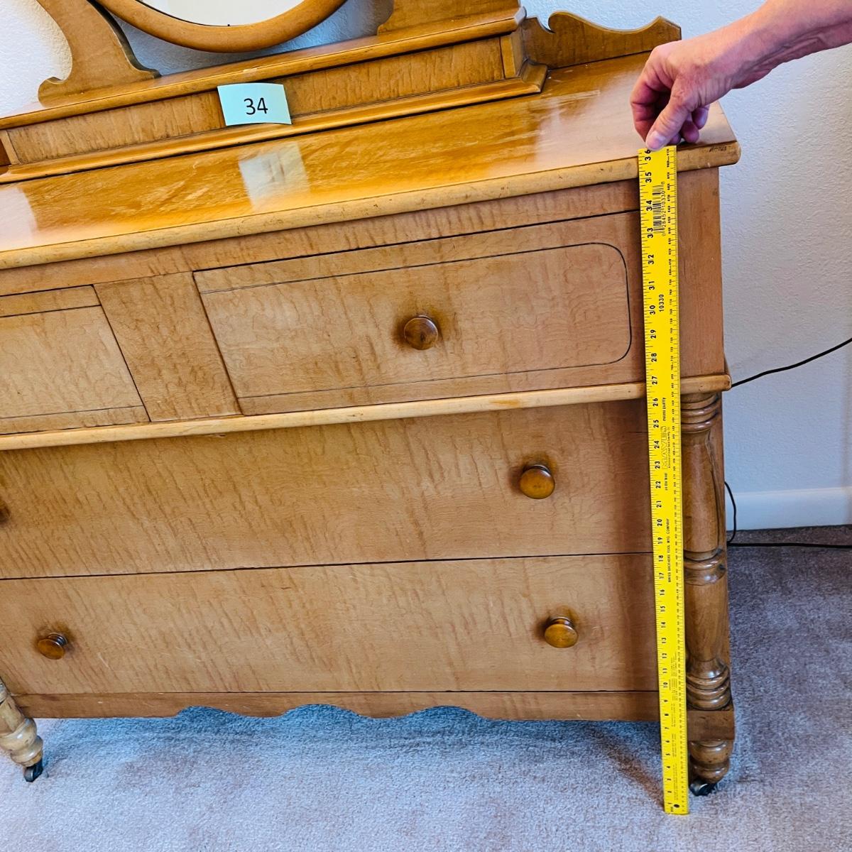 Great antique maple dresser with glove box. Top has water damage, but looks good.