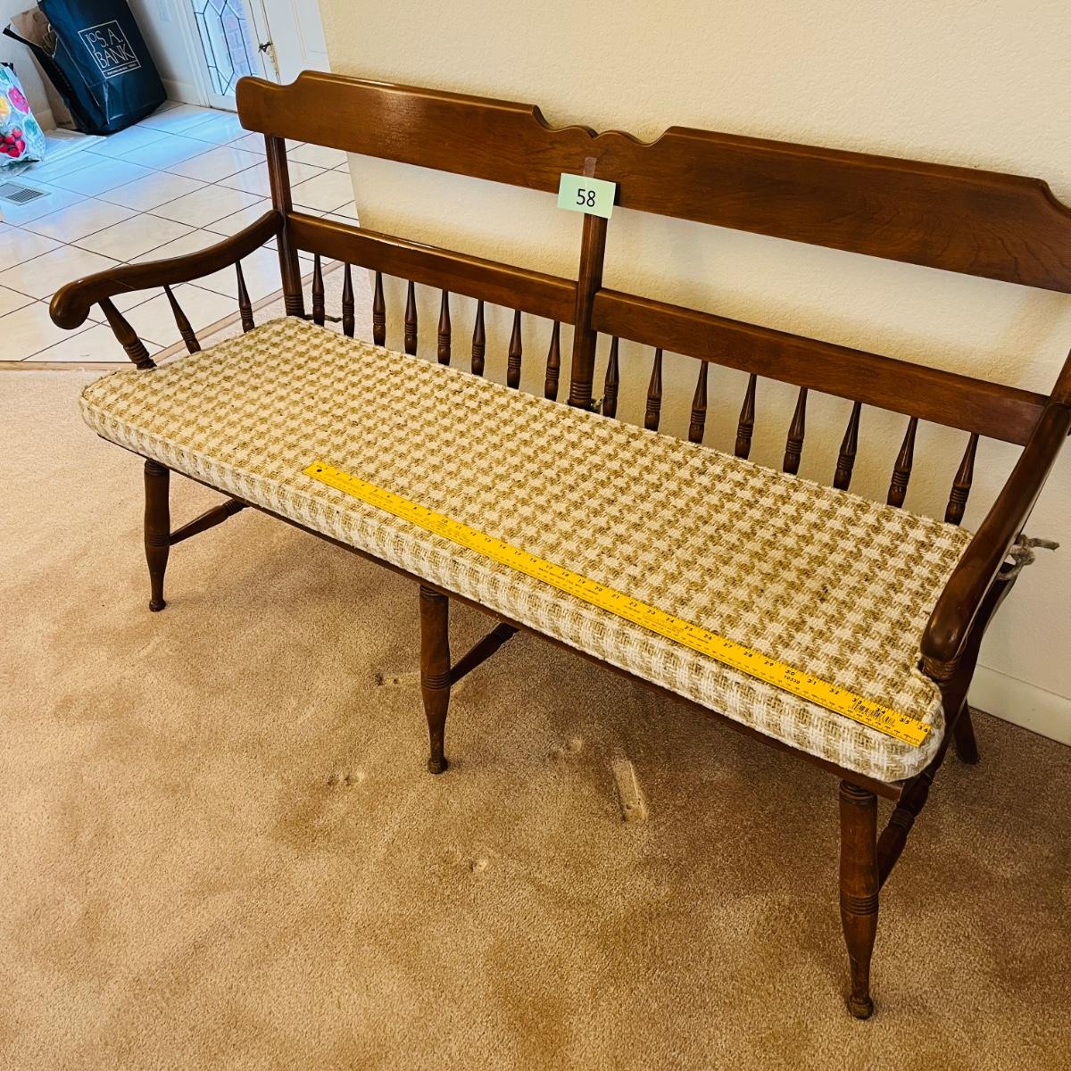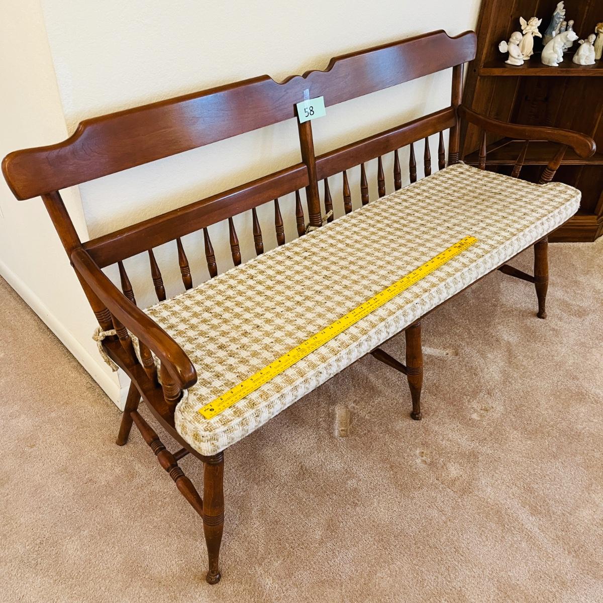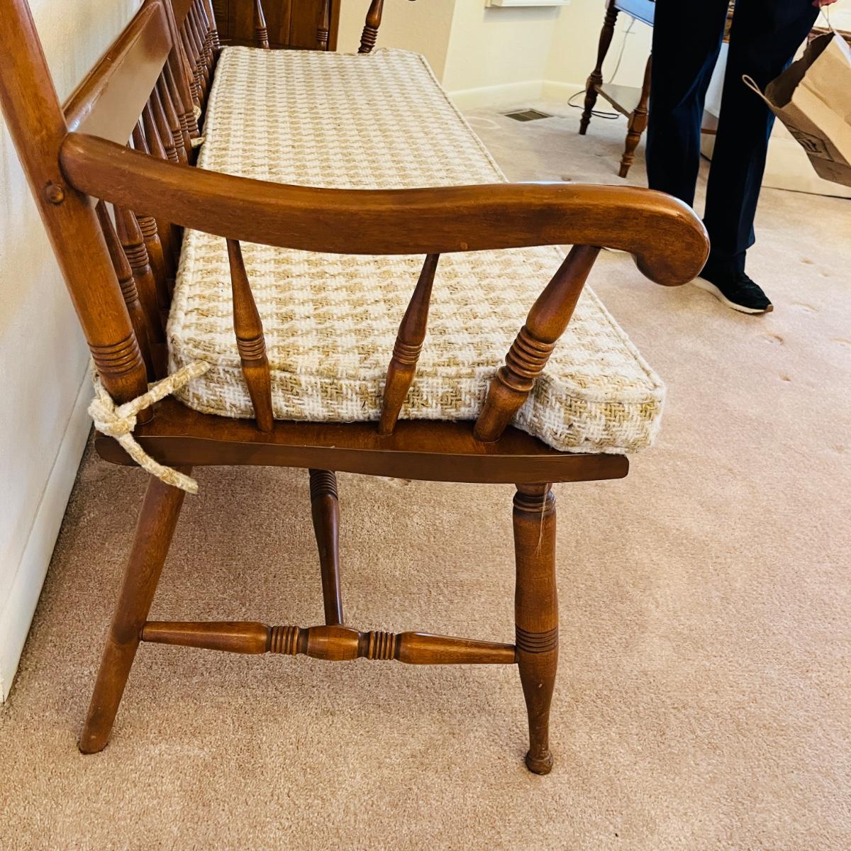 Not sure what the correct term is for this. Early American style Birch wood station bench. Very clean!