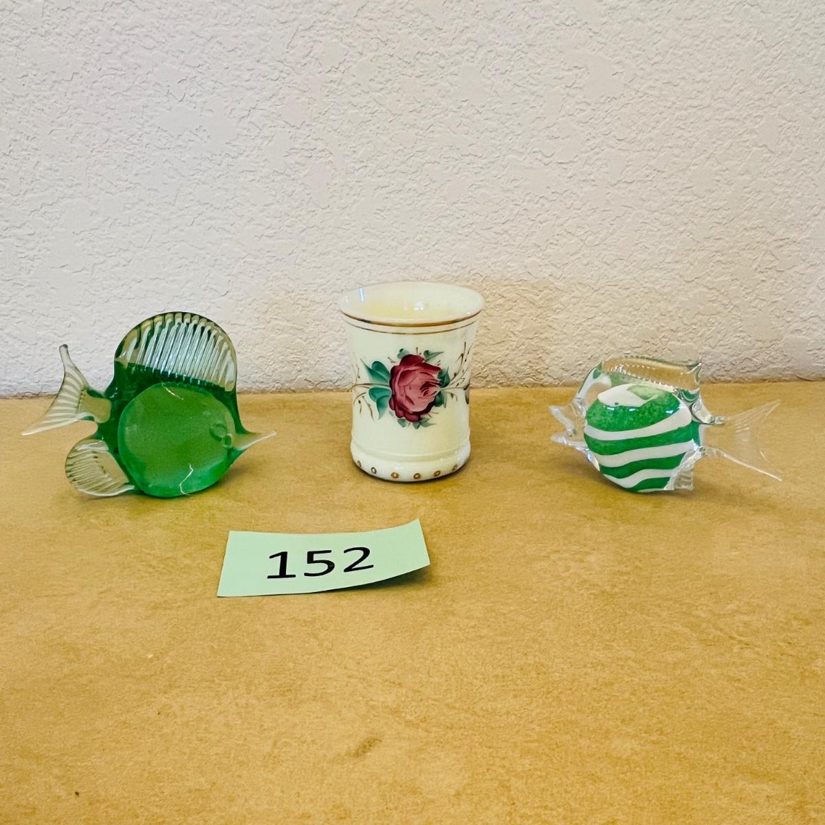 Heisey Custard Tumbler & Fish paperweights