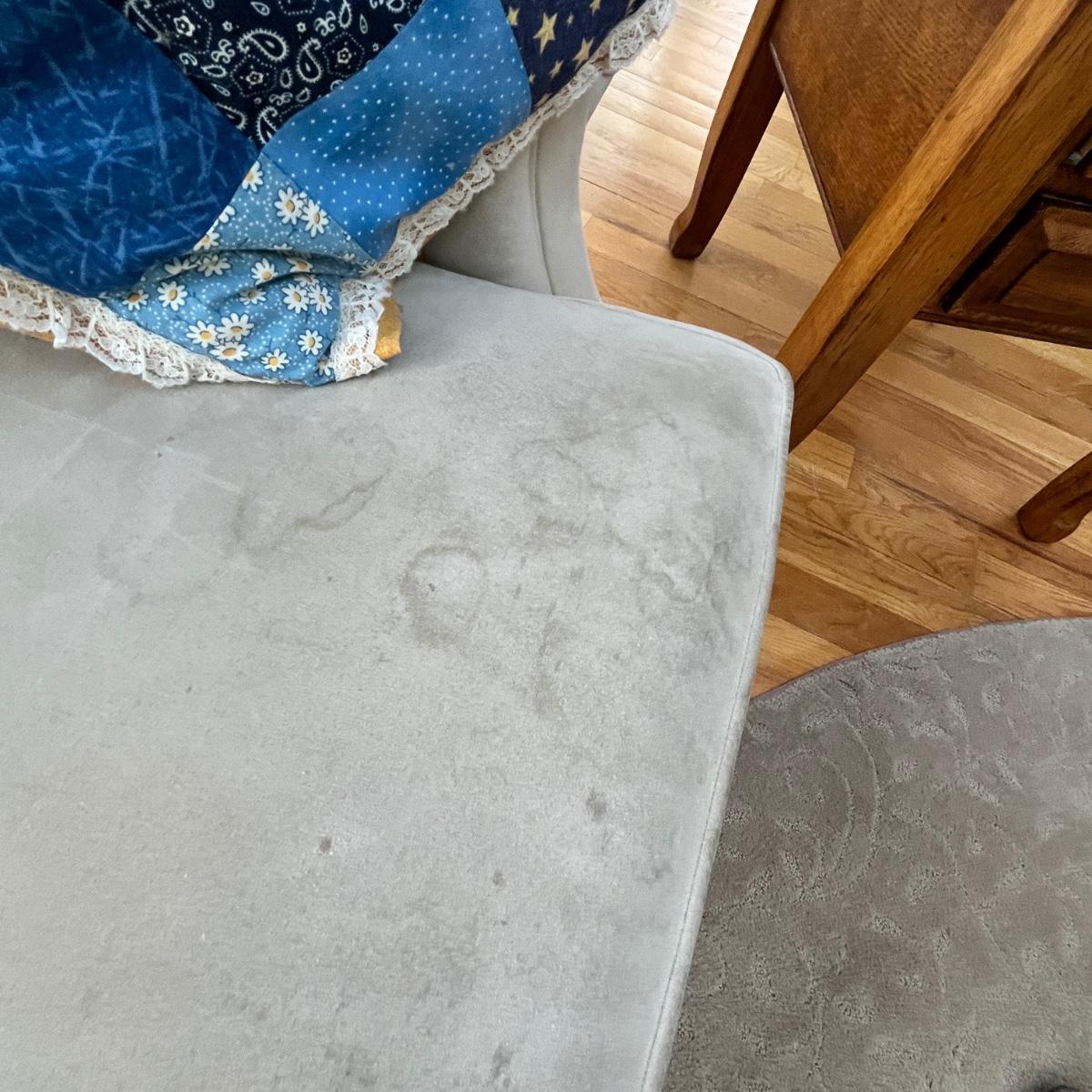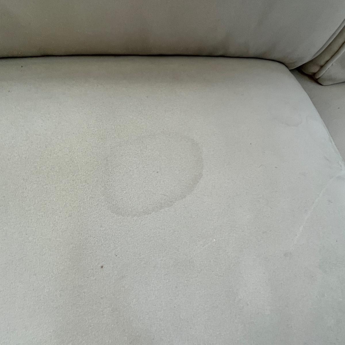 Very nice, but does have spots on the seat cushions; a problematic thing for this material. Displays great, just needs a good cleaning!