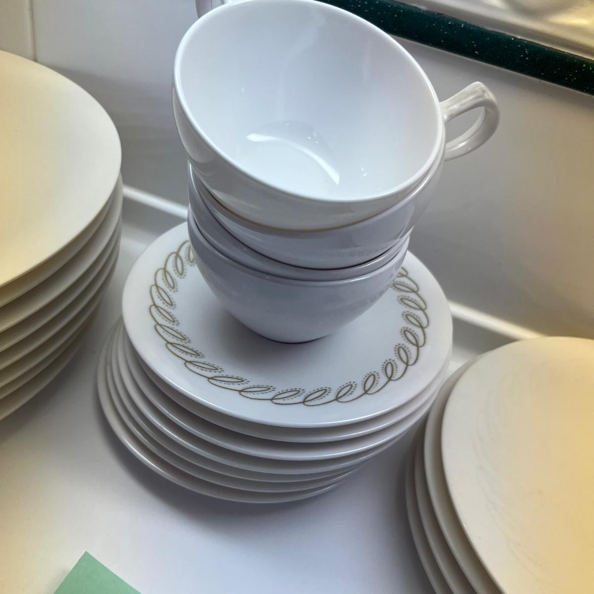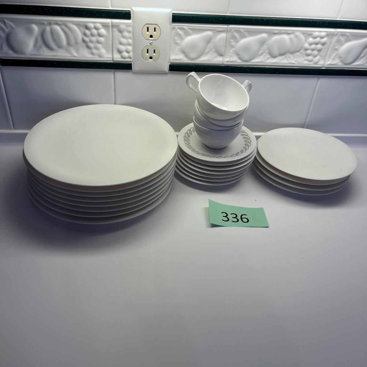 Cups & Saucers have pattern outlines, the plates are DWD.