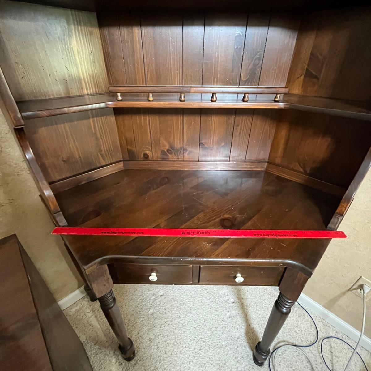 Very nice pine with a walnut finish. Very clean! These bring big bucks on eBay...though I wouldn't want to pay shipping.