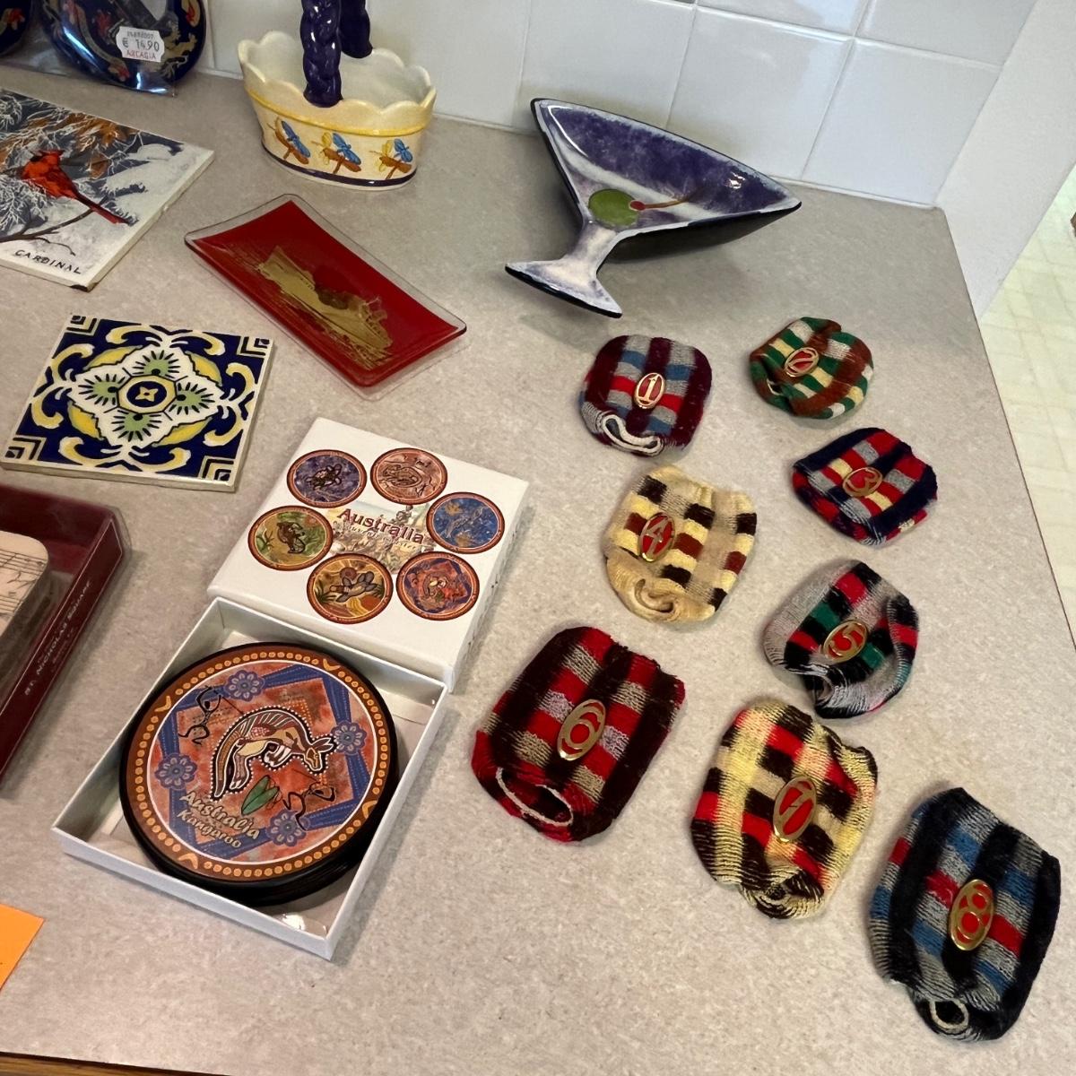 8. Sizes are approximate, you can estimate as our lot number signs are 3.5" long. Also we use an 18" & 36" measuring stick.  We try on certain things to do actual measurements. No guarantees on actual sizes, we try our best!