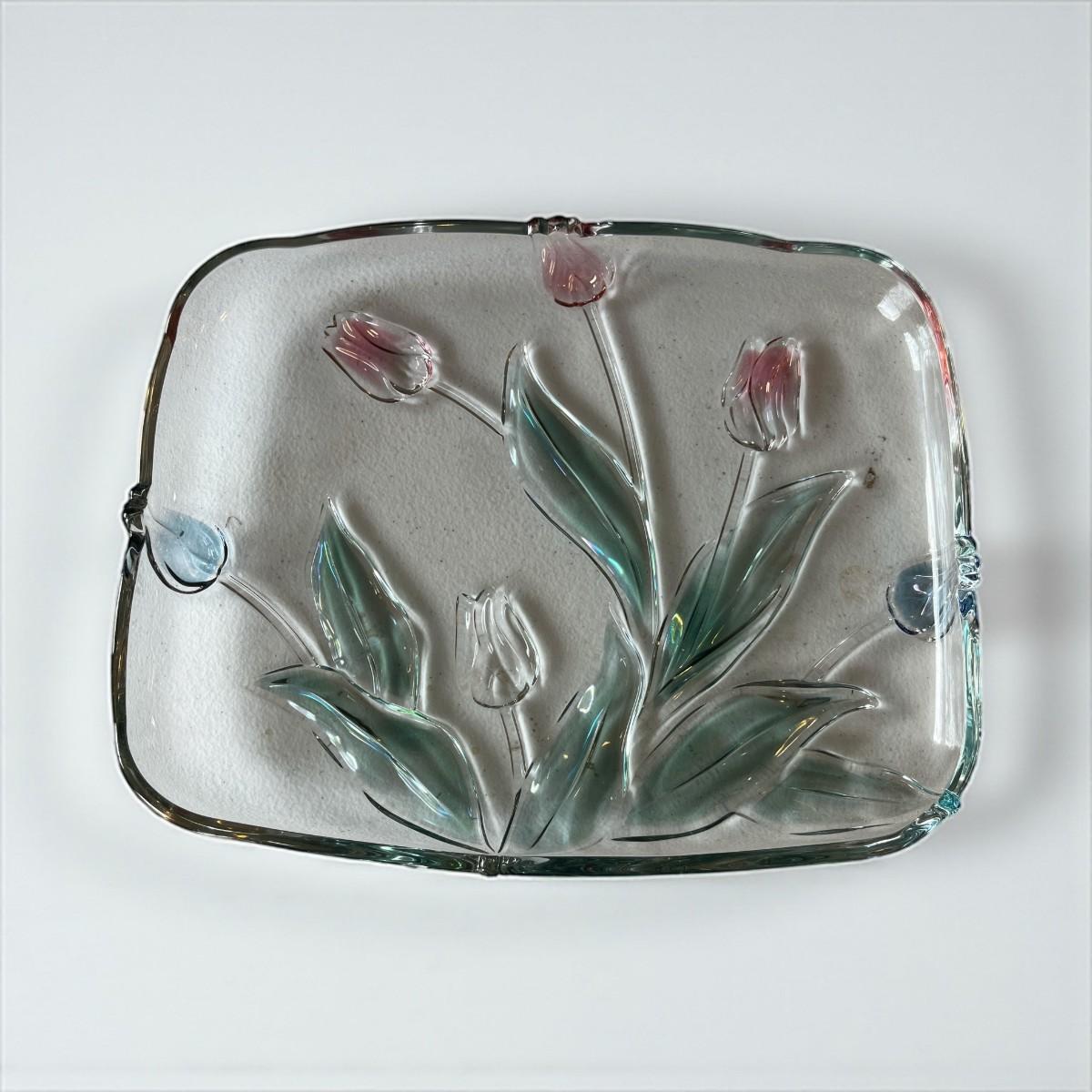 Tivoli Walther Crystal Glass 3D Colored Tulip Serving Tray