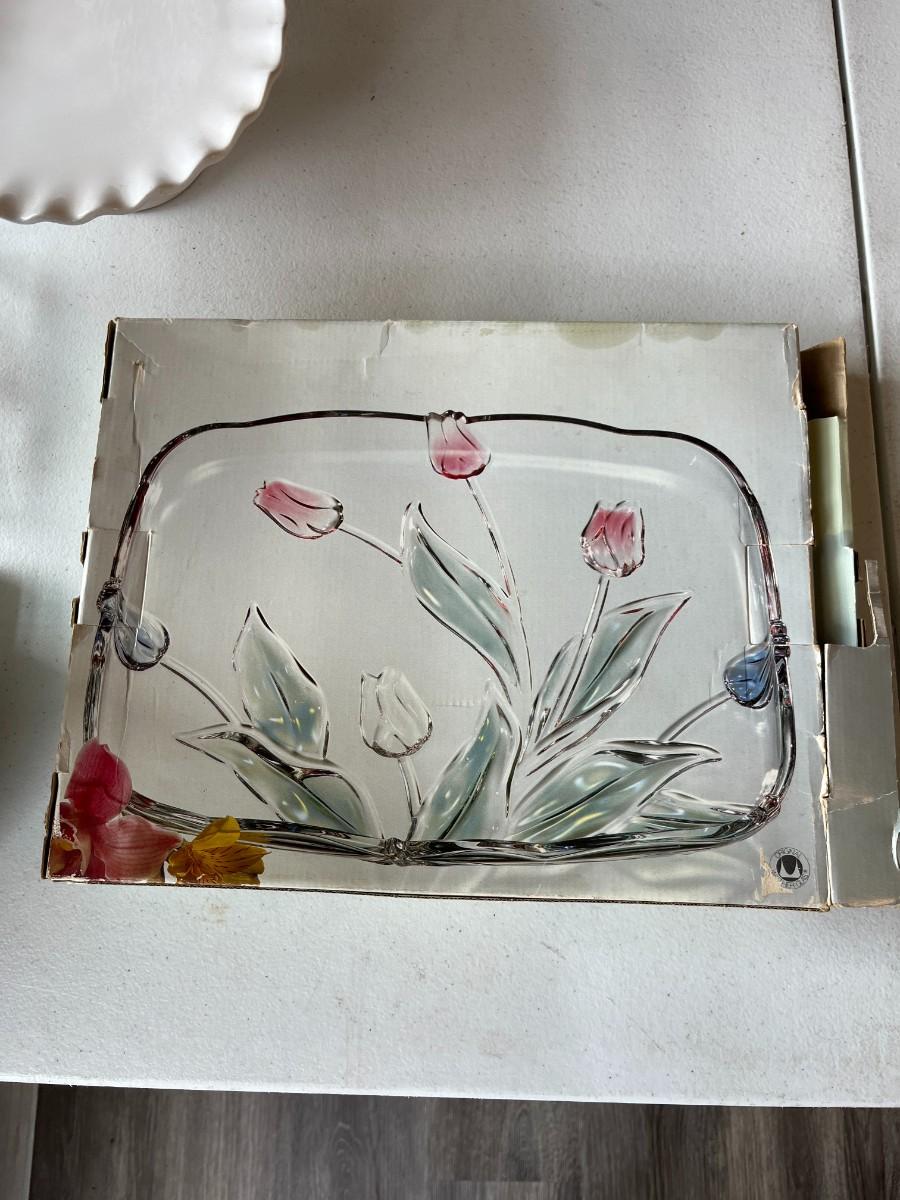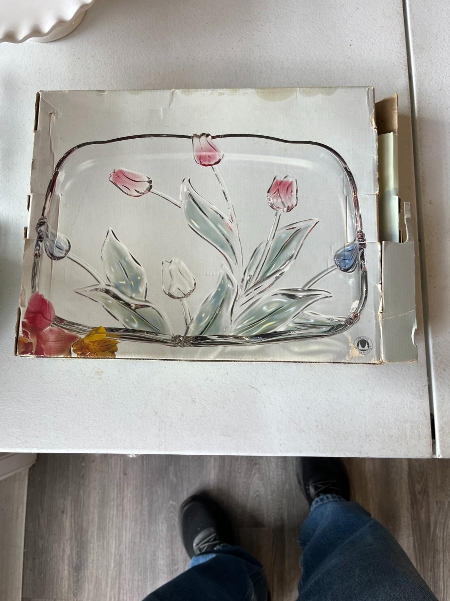 Tivoli Walther Crystal Glass 3D Colored Tulip Serving Tray with box
