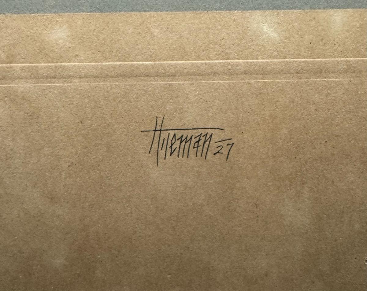 This piece is a photogravure, which is created by transferring an image to a copper plate, then making prints. It has been said that Chief Two Guns (pictured here) was the model for the Buffalo nickel. This piece is pencil signed by T.J. Hileman and Chief Two Guns. Measurement: 19”W x 23”H (framed). Pre-auction estimate: $200-$300. [JL]
