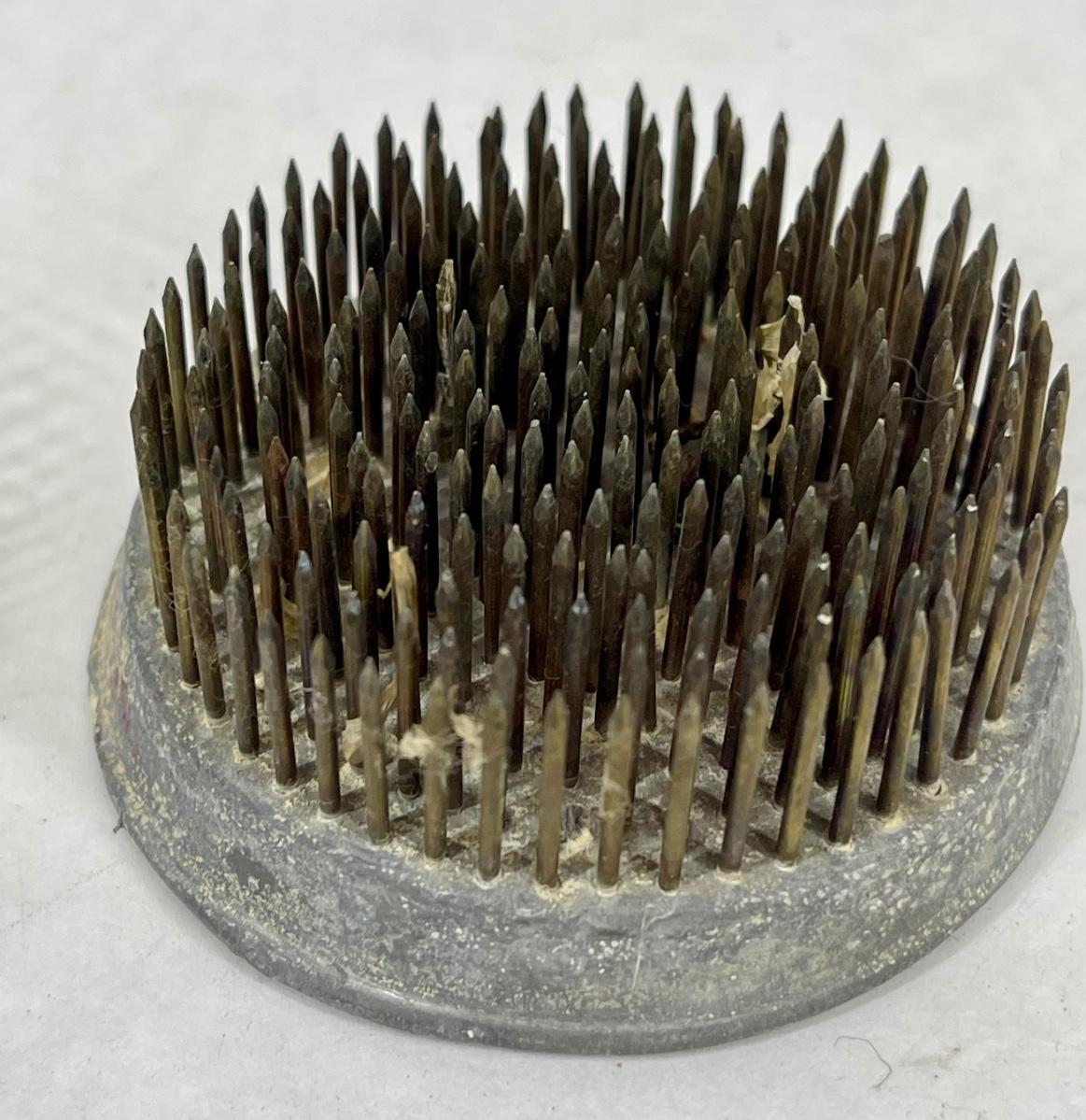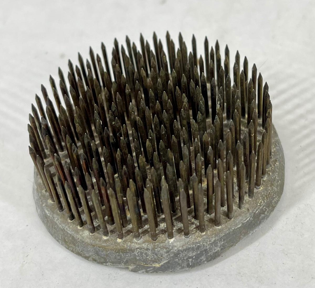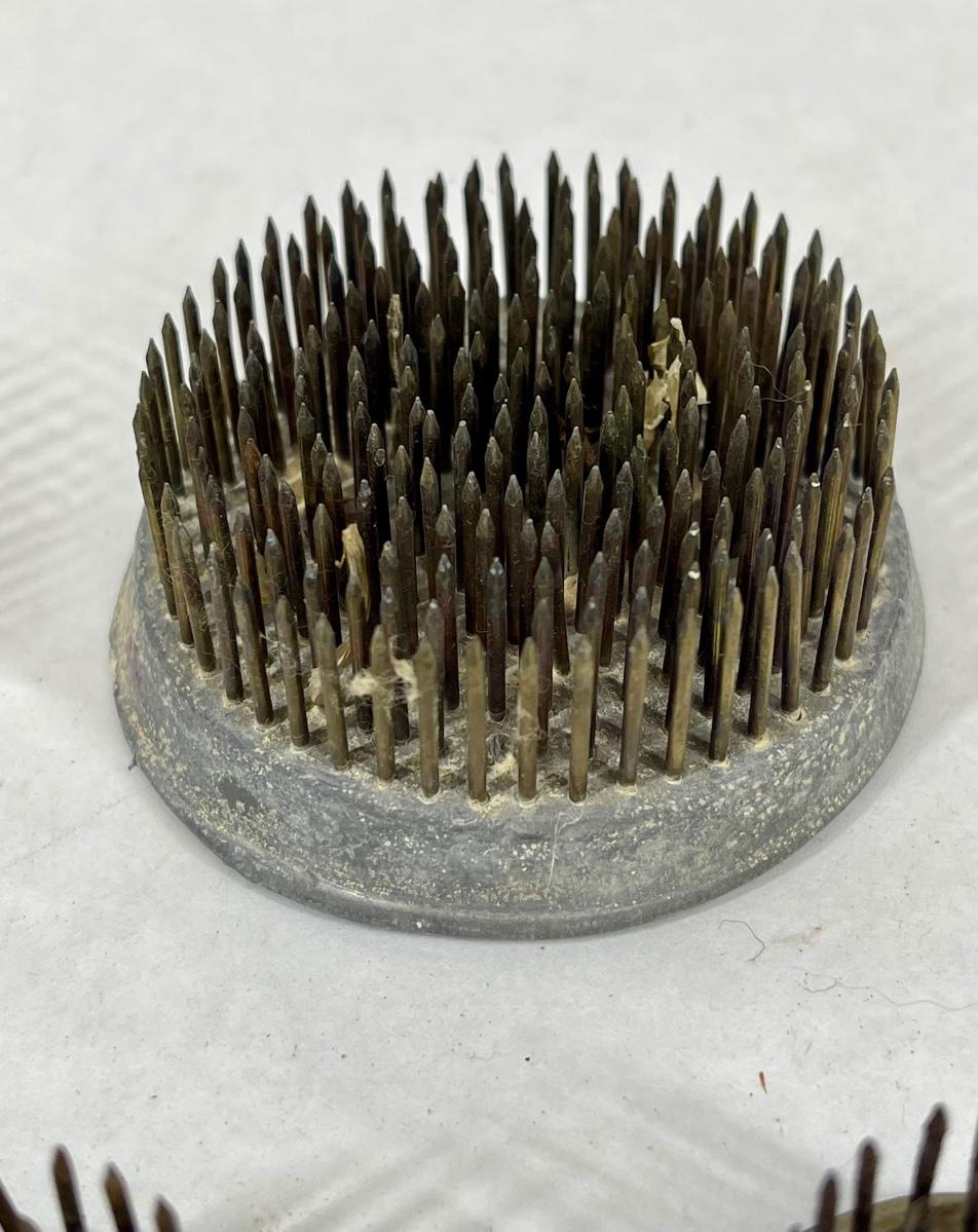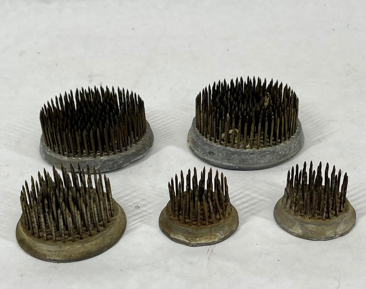 5 Metal Spike Vintage Flower Frogs, 2 signed