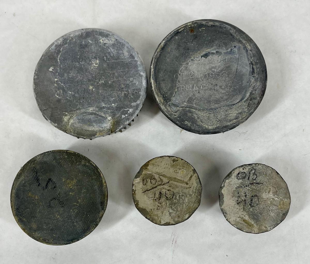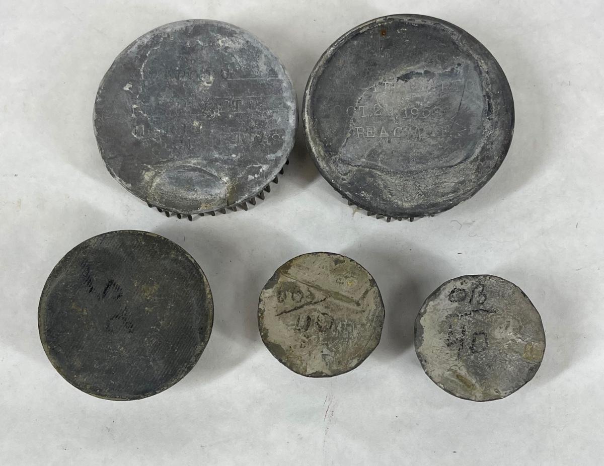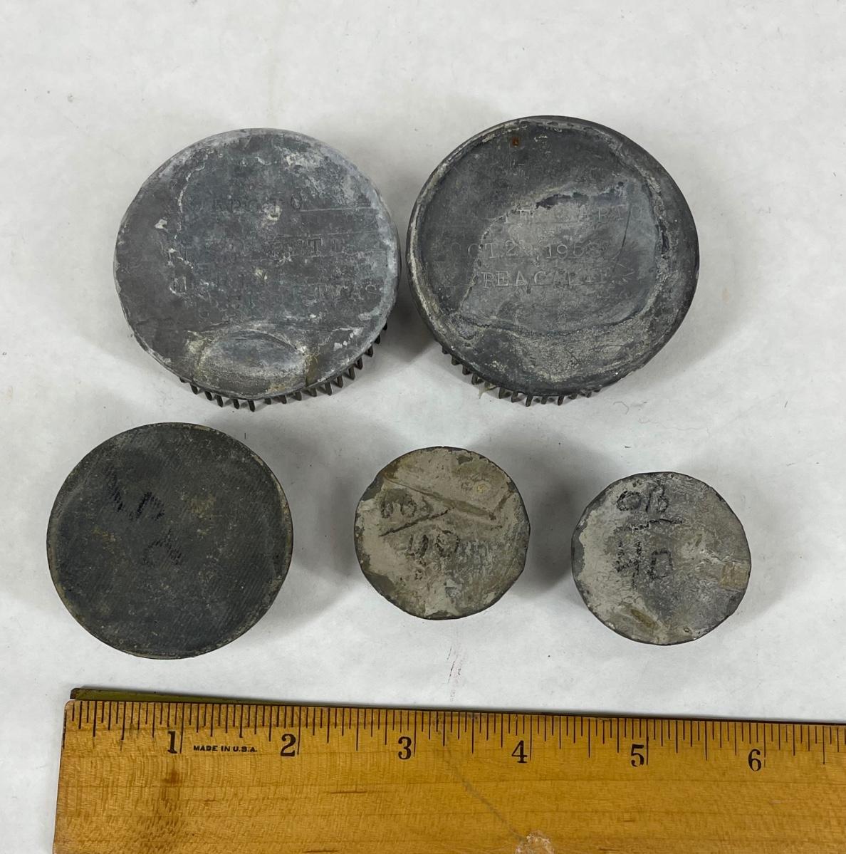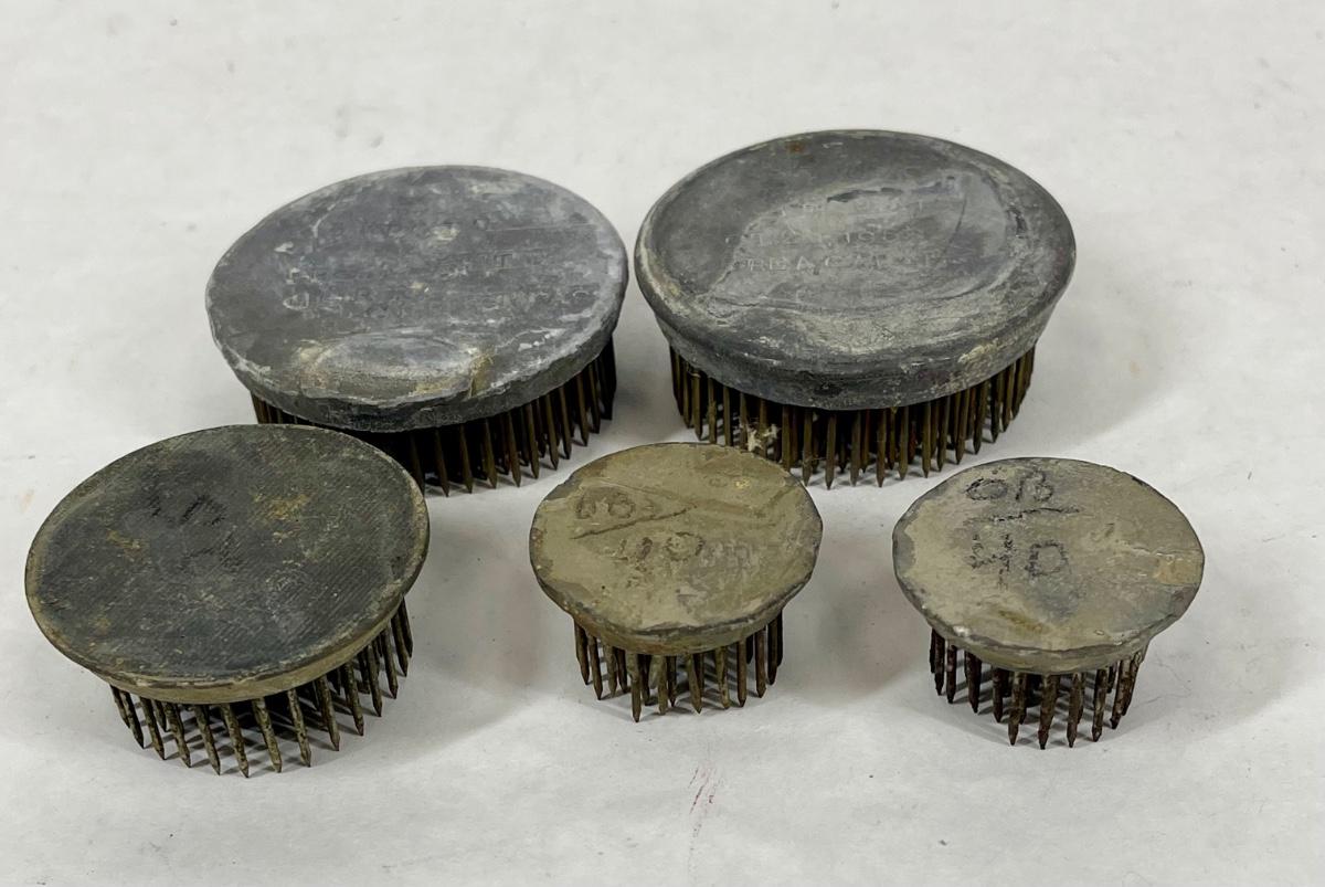 5 Metal Spike Vintage Flower Frogs, 2 signed