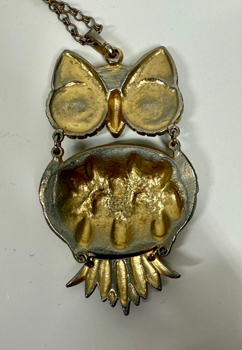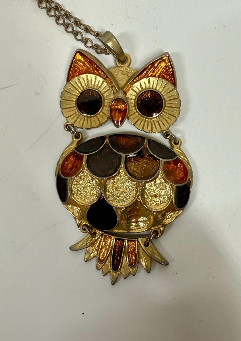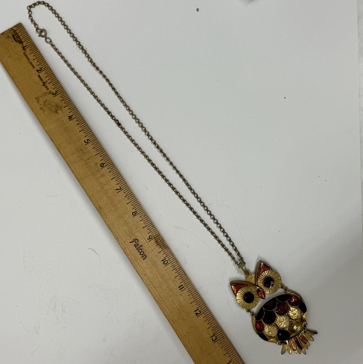 Vintage Owl Pendant Necklace jewelry Vintage layered Copper and Coral color , missing stones