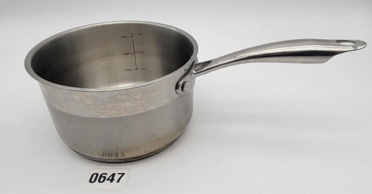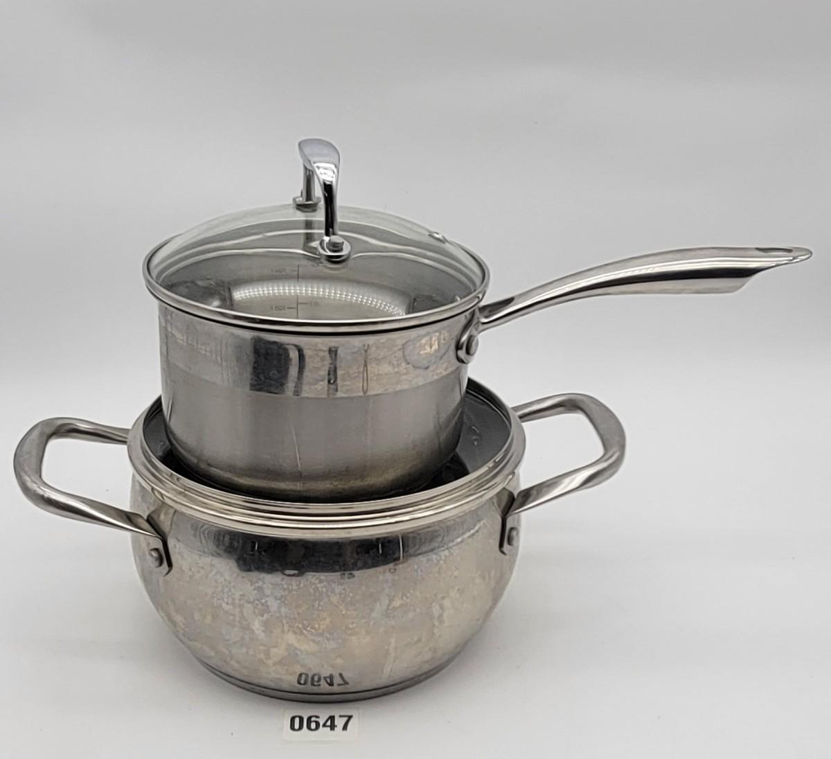 1.5 Qt pan with handle. The other pan does not have capacity listed. Use size comparison to gain a rough idea on the size of the other.