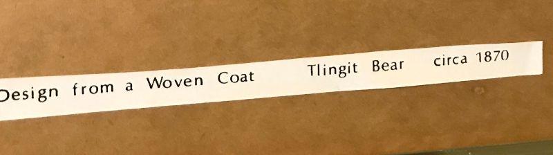 Unsigned, artist unknown. Design from a woven coat. Measures 25 inches long and 17 inches wide framed.