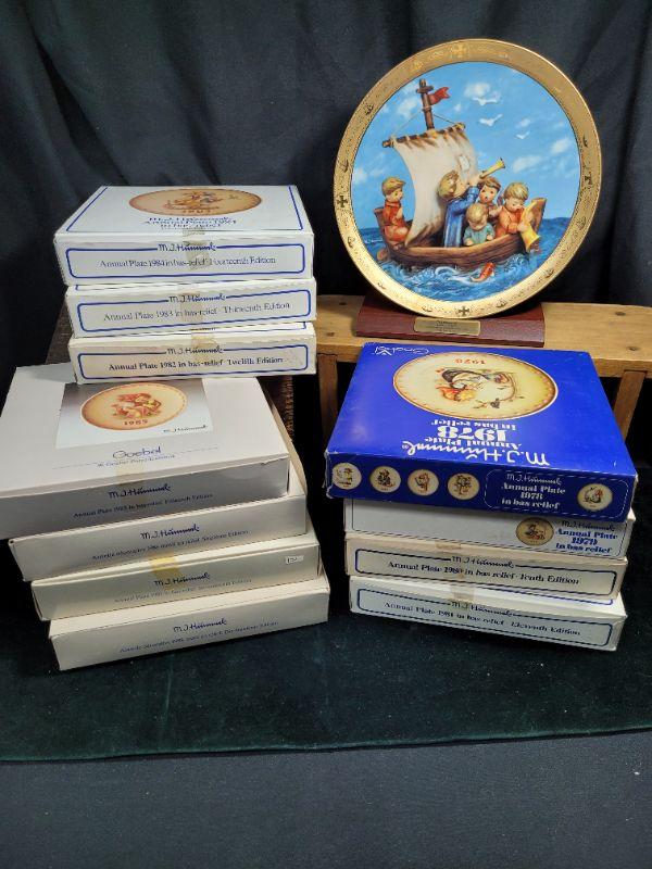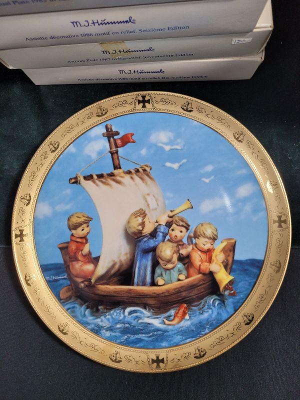 The years are in succession. 1978, 79, 80, 81, 82, 83, 84, 85, 86, 87, 88. AND a Extra Collectable Plate 1991 "Land In Sight" LE with a display stand.