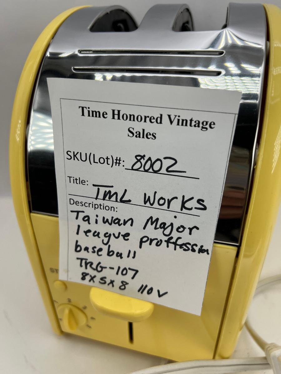 Taiwan Major League TRG-107 with paperwork and instructions. Side round mirror and fun yellow color makes this a fabulous unit to display or use in your MCM style kitchen.