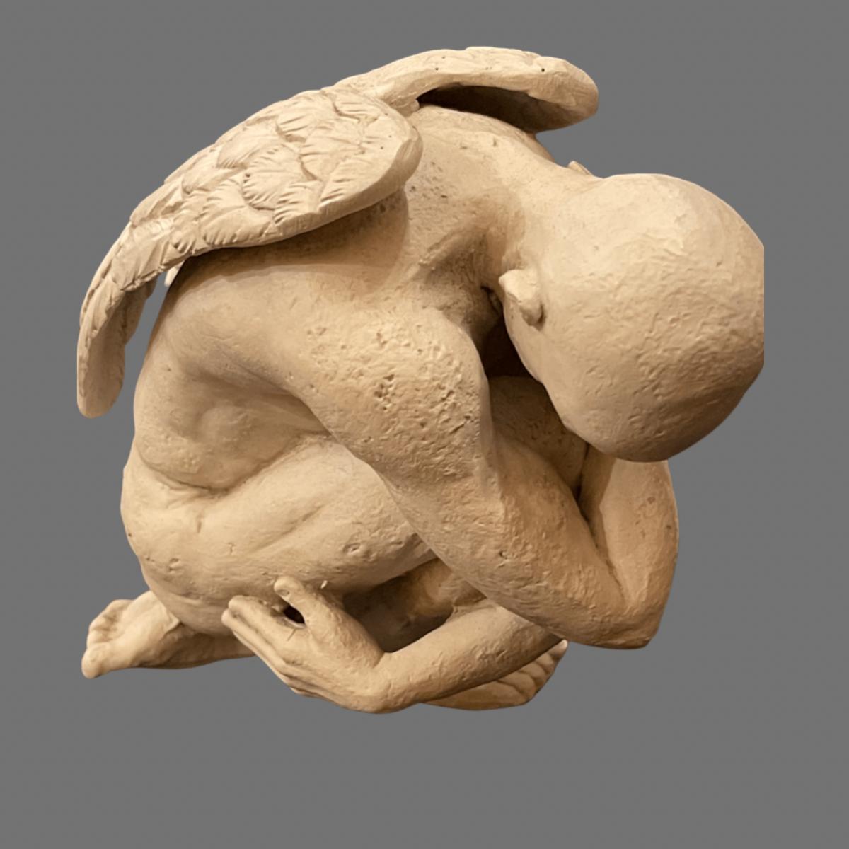 Pretty cool detail on this pensive angel from Vitruvian Collections, made out of resin, with the angels in white on a black base with a leather-like texture.