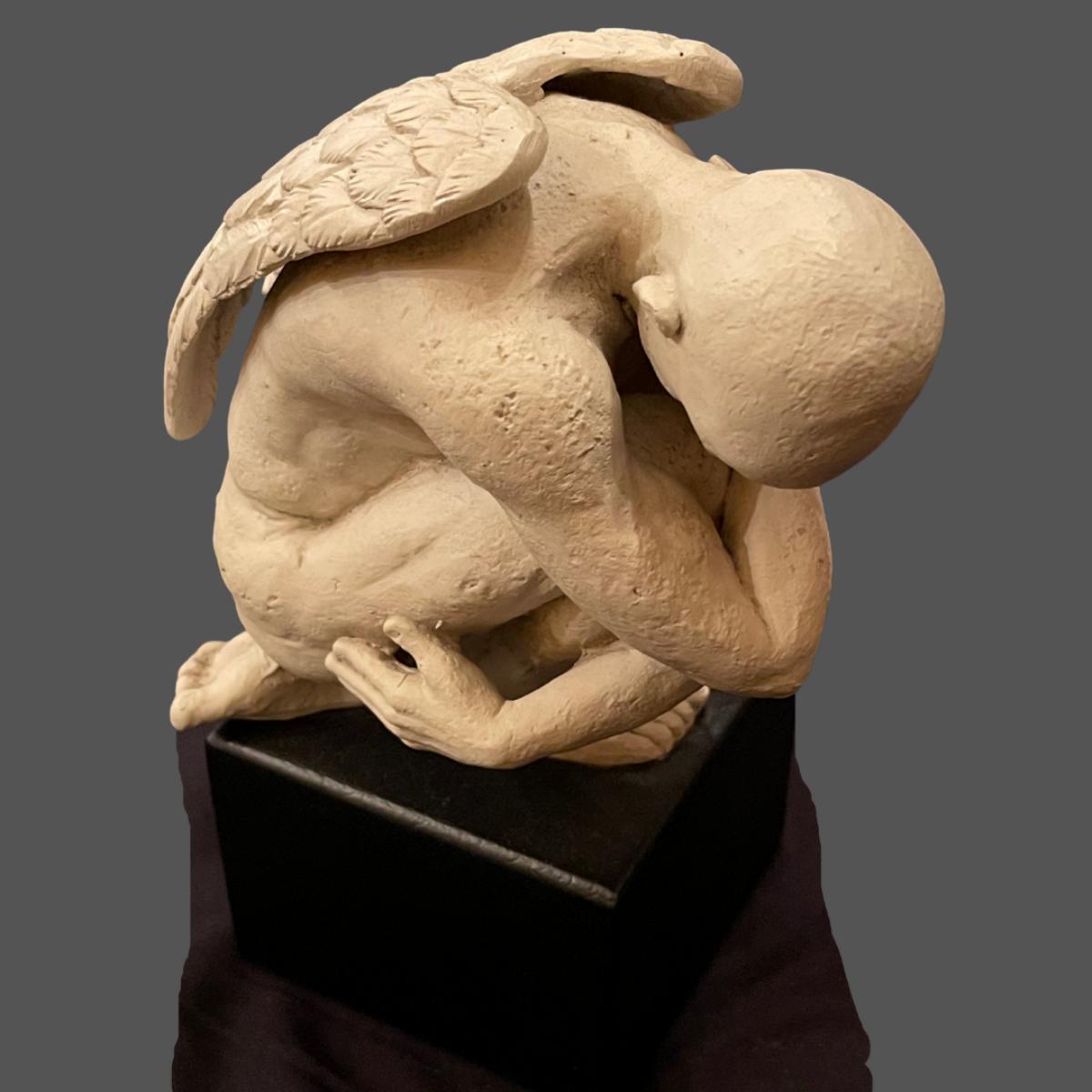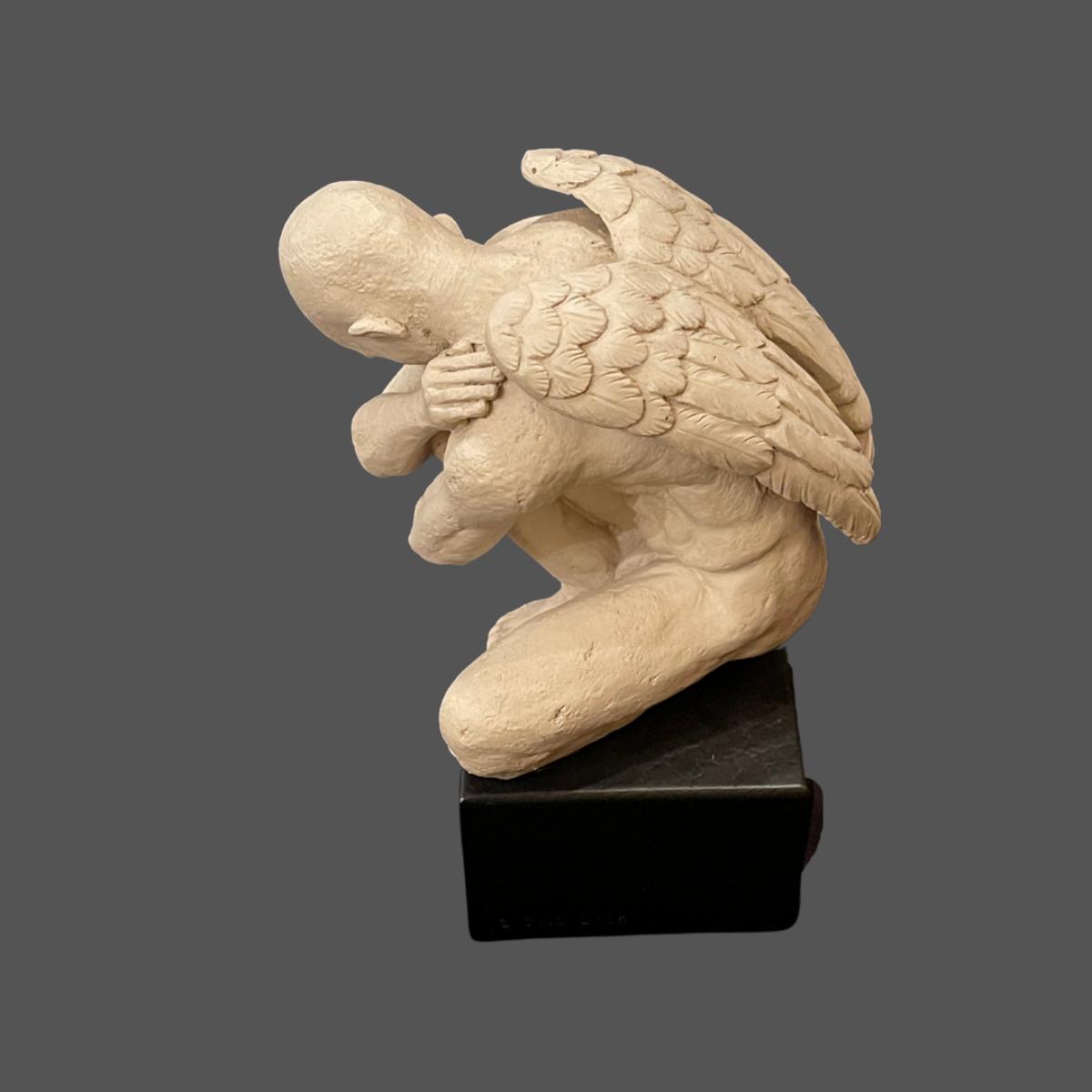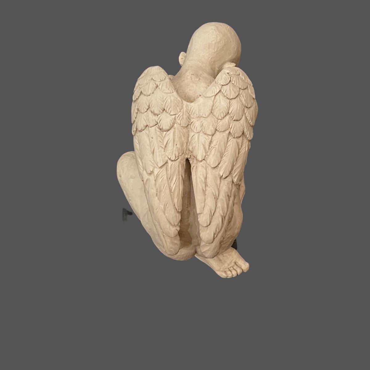 Pretty cool detail on this pensive angel from Vitruvian Collections, made out of resin, with the angels in white on a black base with a leather-like texture.