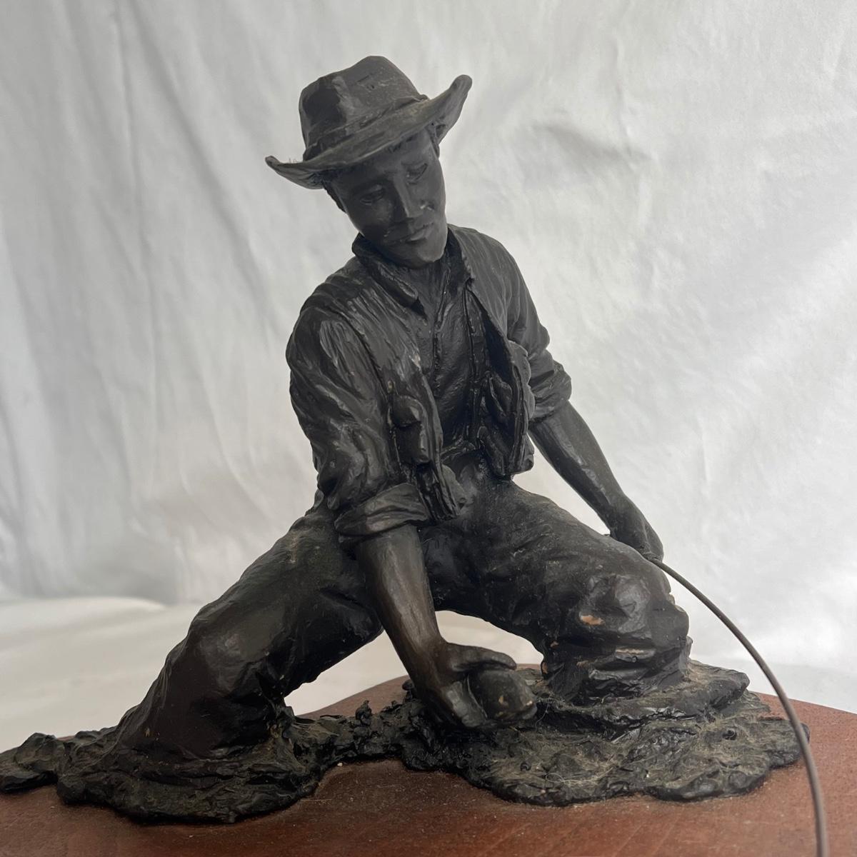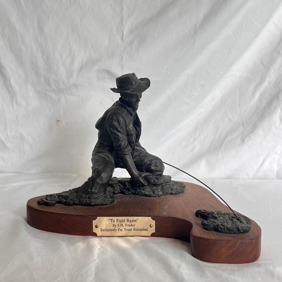 This lot includes one sculpture titled “To Fight Again” by E.M. Fender. It appears to be a bronze sculpture on a wooden base. The sculpture, with the base included, measures 12” x 7” x 8”H. Shipping available.