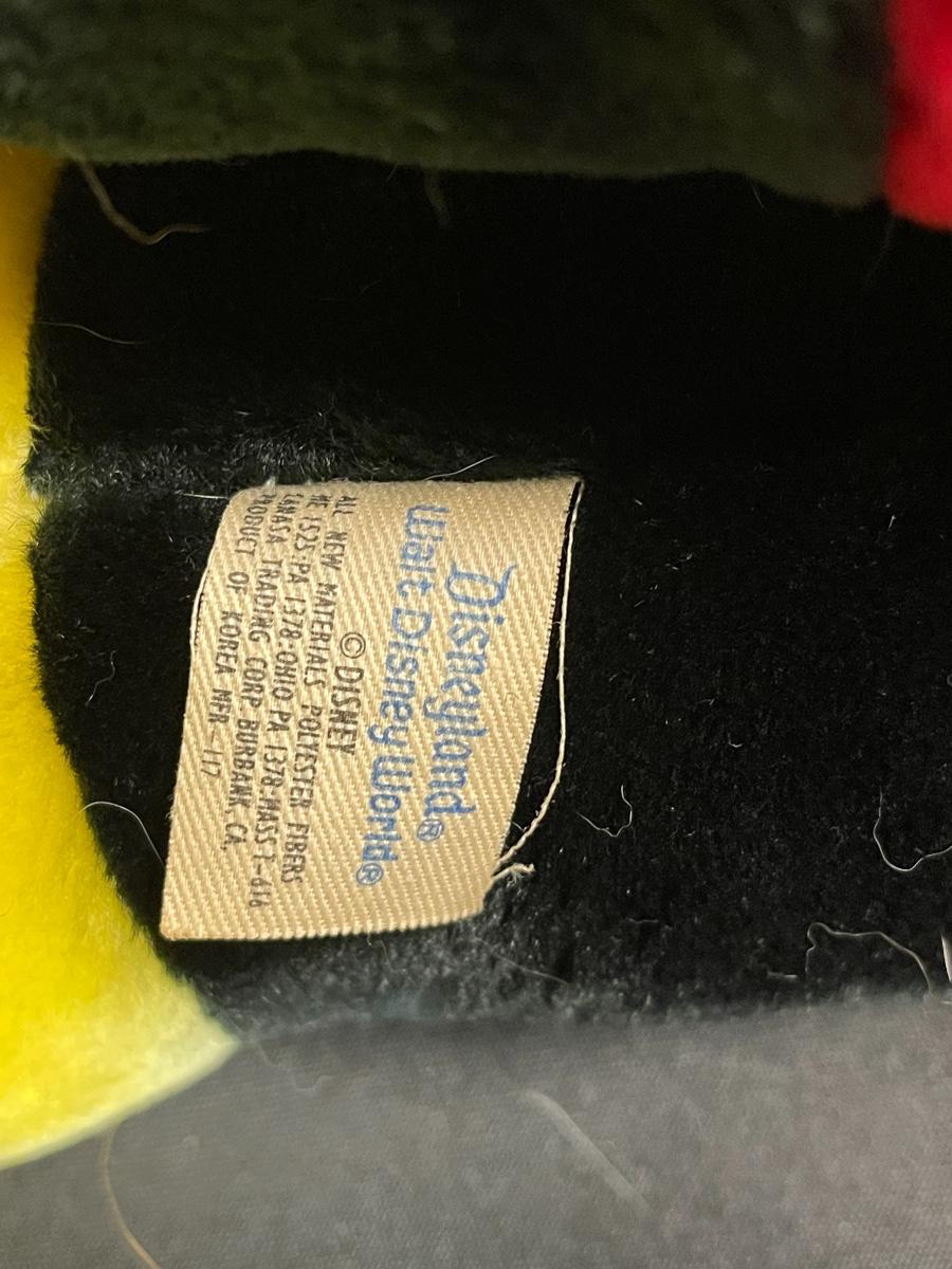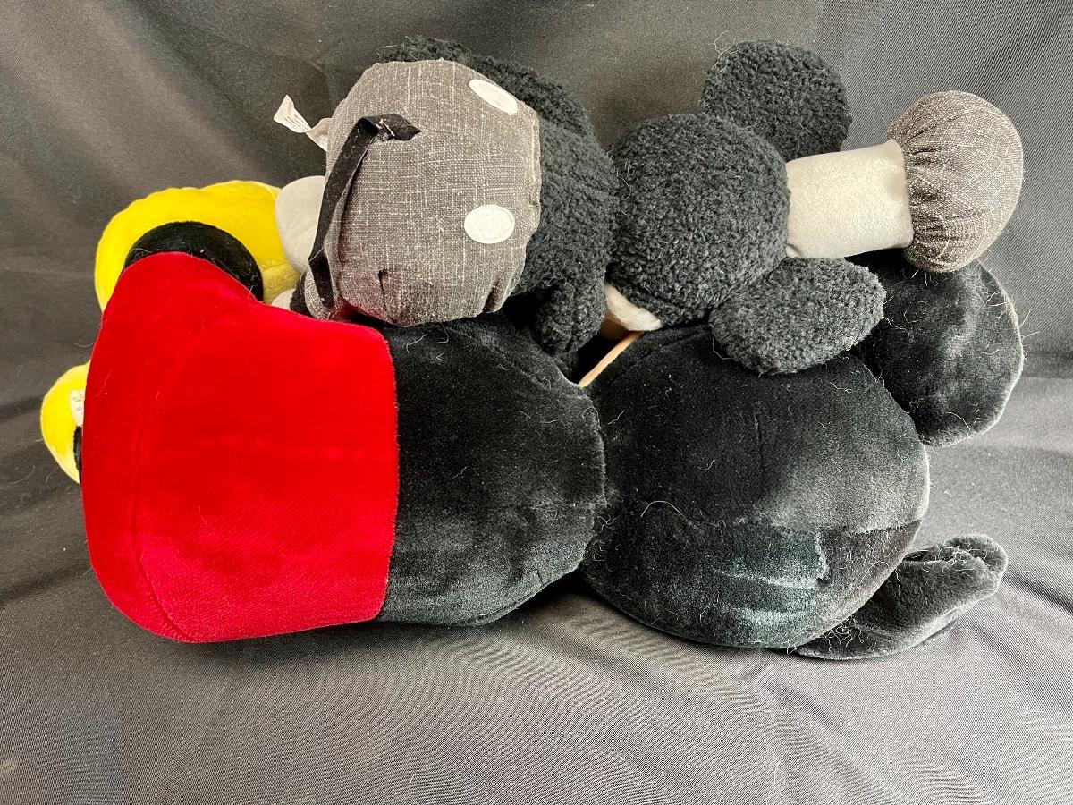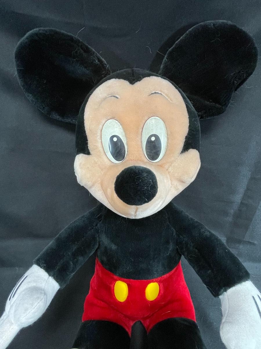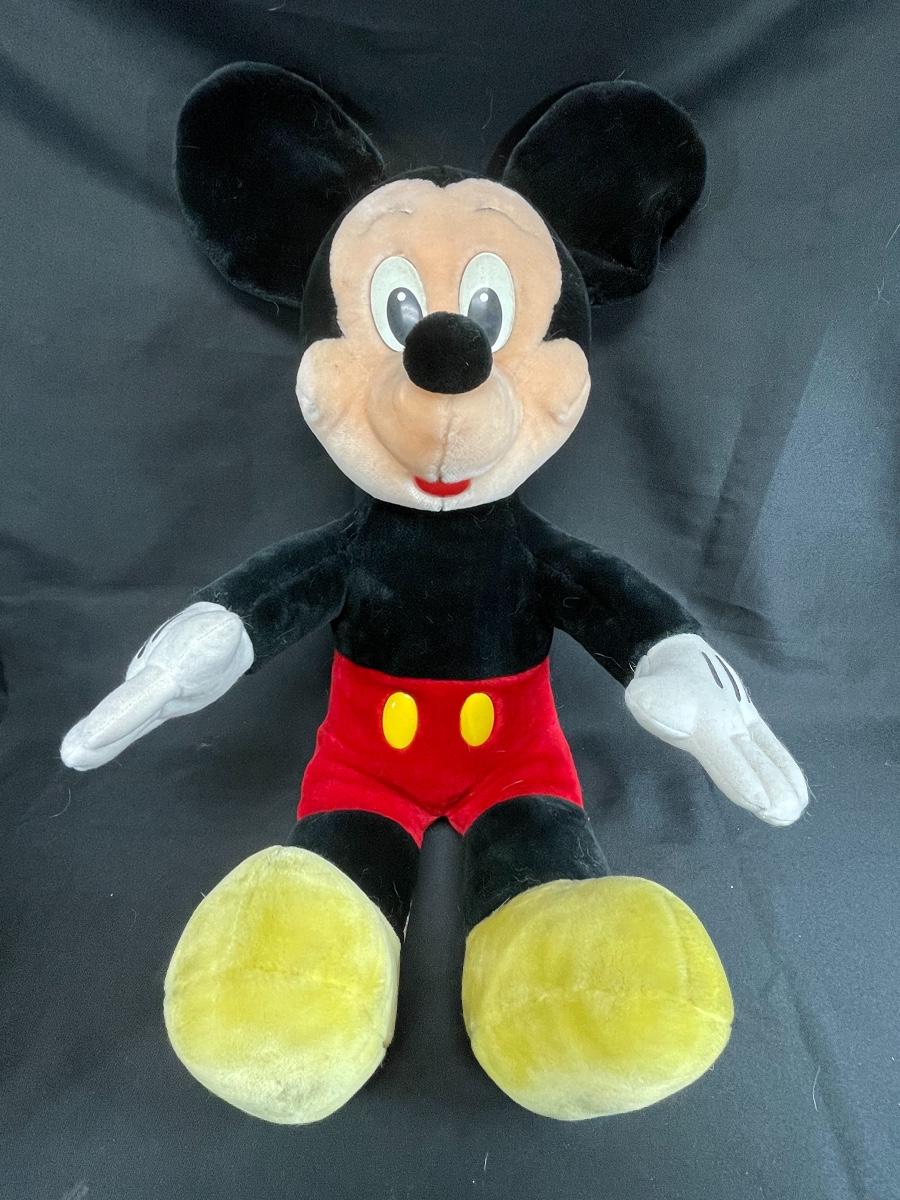 Both in good condition, a little dusty from sitting on the shelf, but otherwise just fine. Large Mickey is roughly 27 inches long.