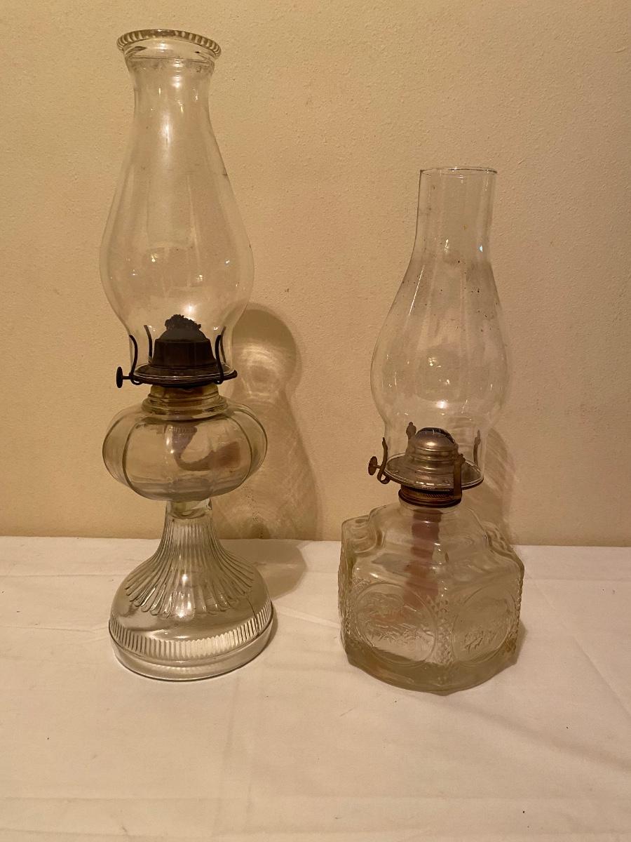Two vintage kerosene lamps. Approx 17-1/2h and 14-1/2h. Very good condition