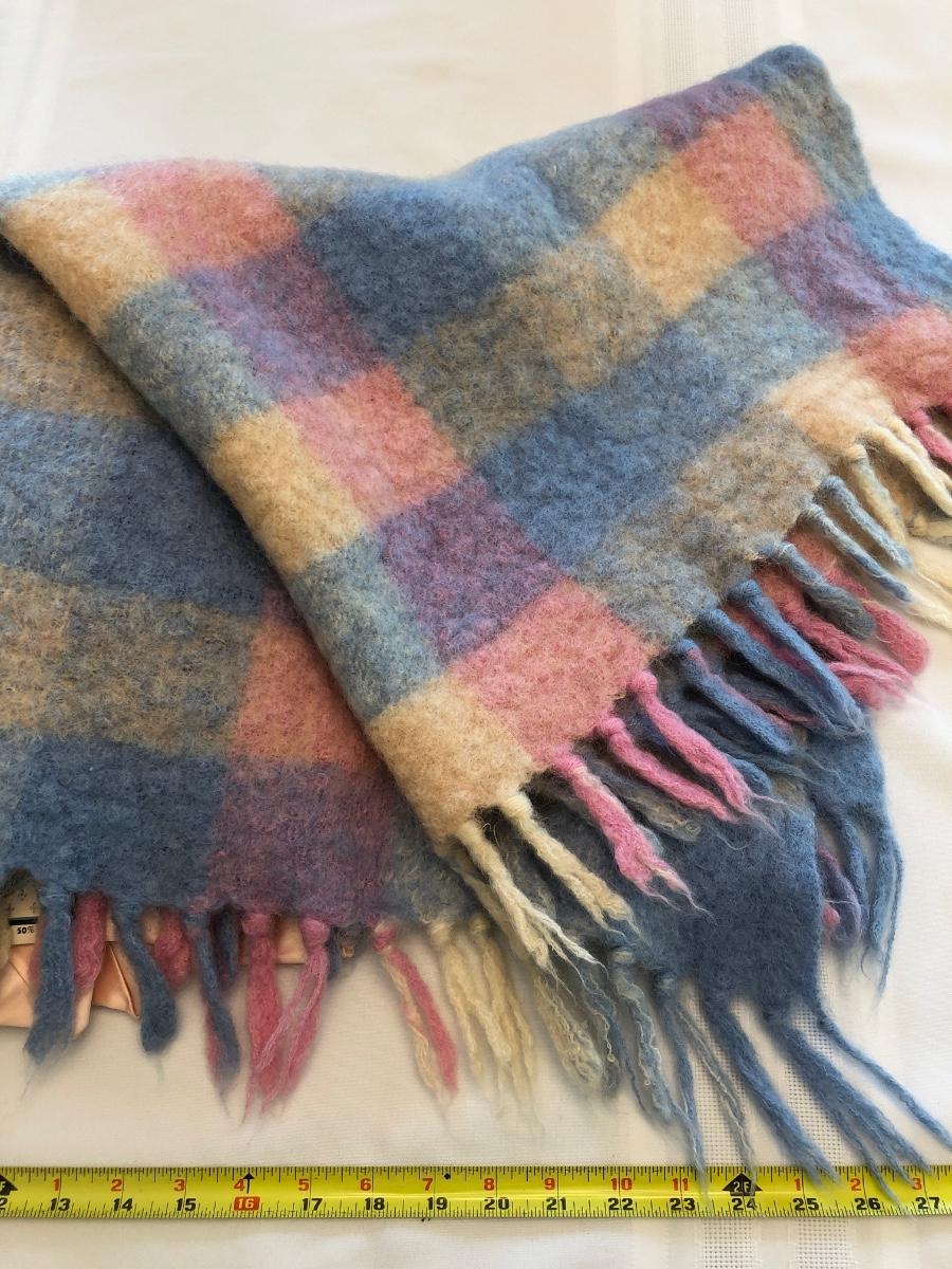 Vintage Edmond slumber rest, blended wool, rayon, and cotton blanket with tags. Irish wool plaid throw.