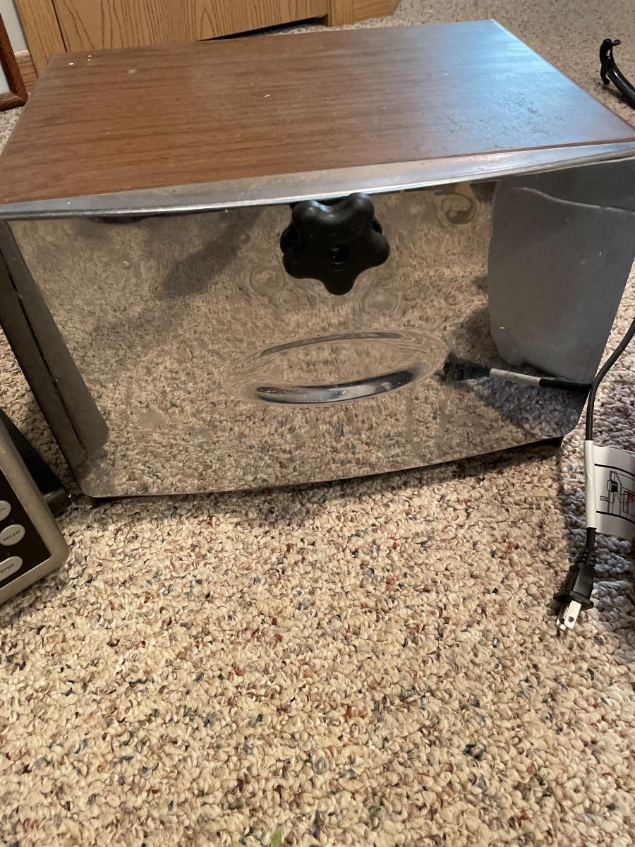Toaster oven, bread box & cool daddy