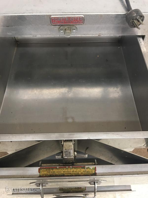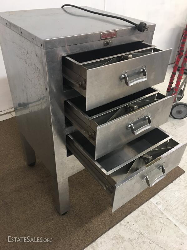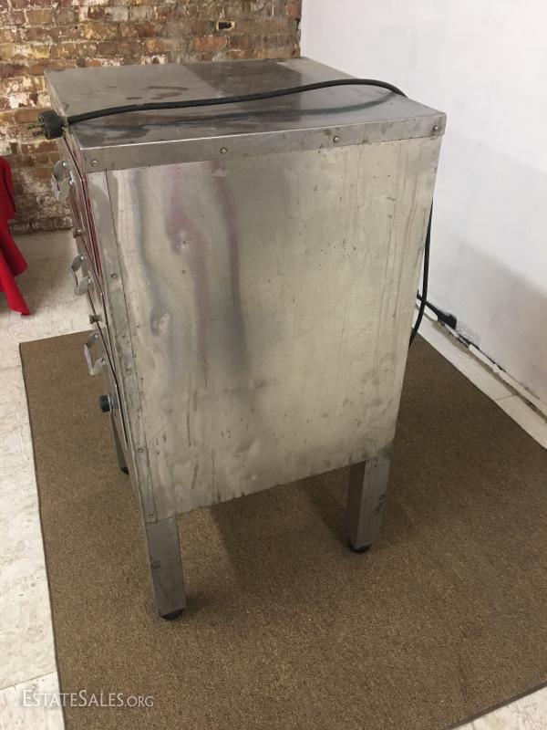Warmer is in working condition and was in use when restaurant was shut down. Measures 23" square and 43" tall 3 drawers.